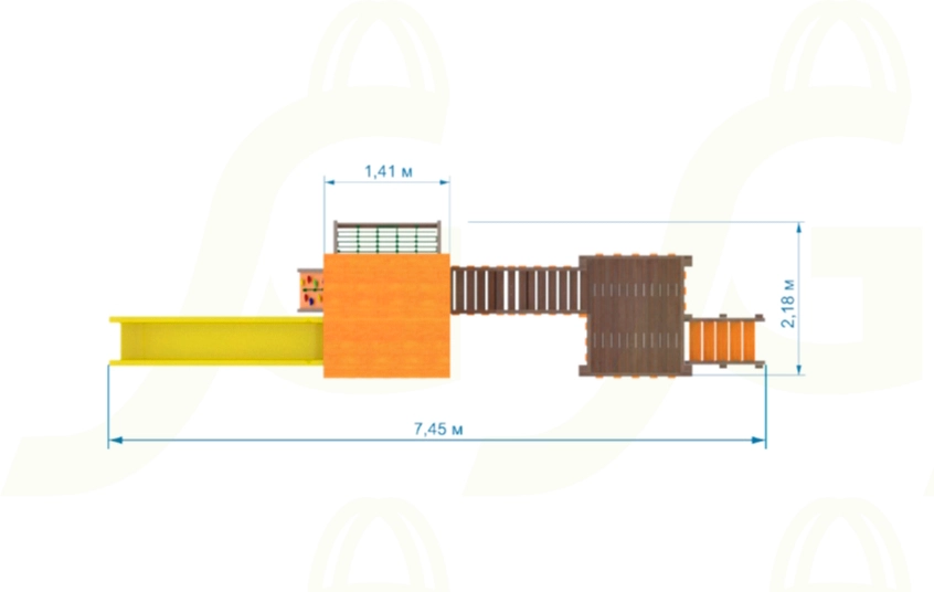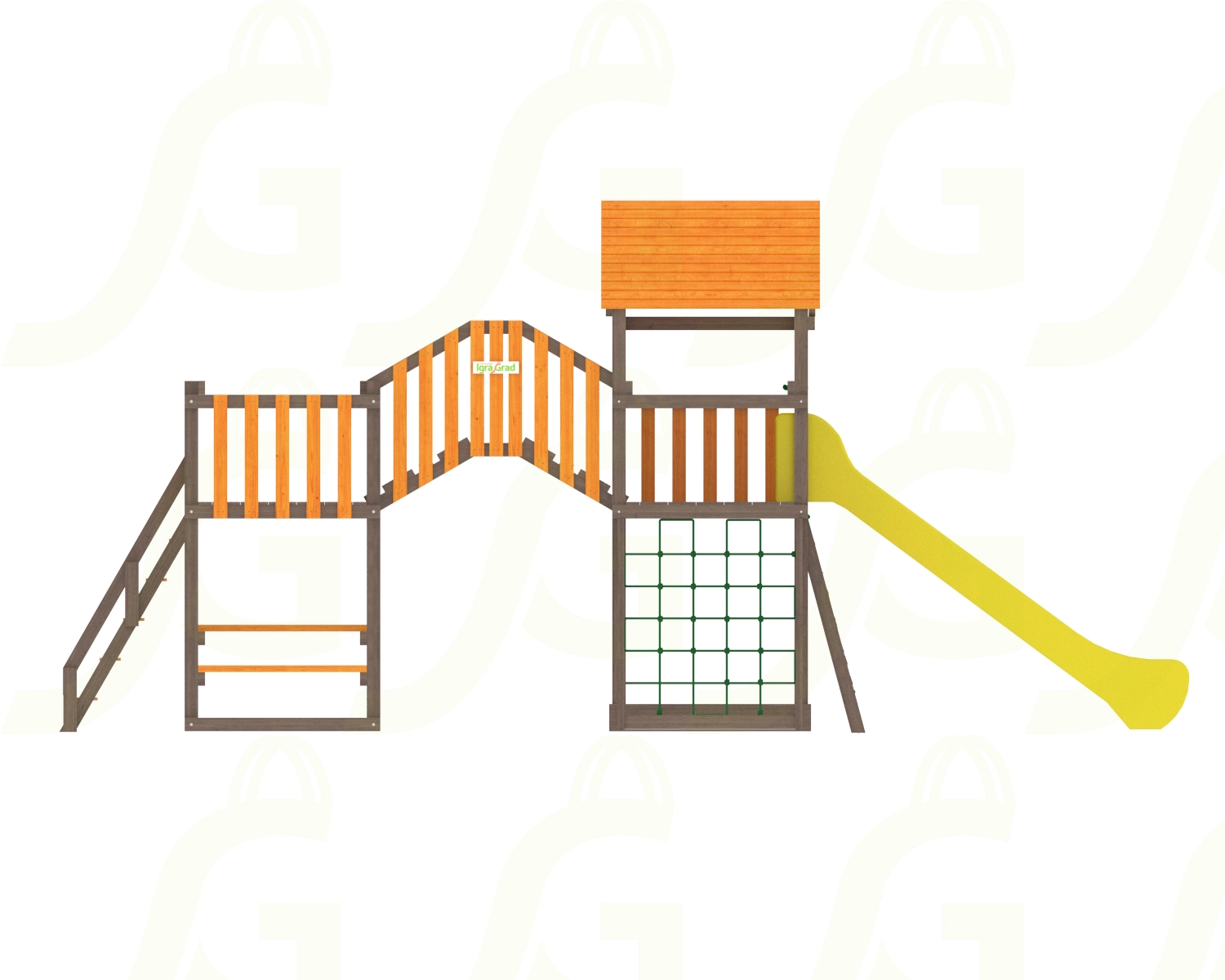 Комплекс с мостиком, деревянной и волновой горкой.