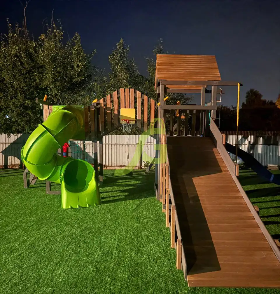 Комплекс с горкой трубой, деревянная горка и волновая горка