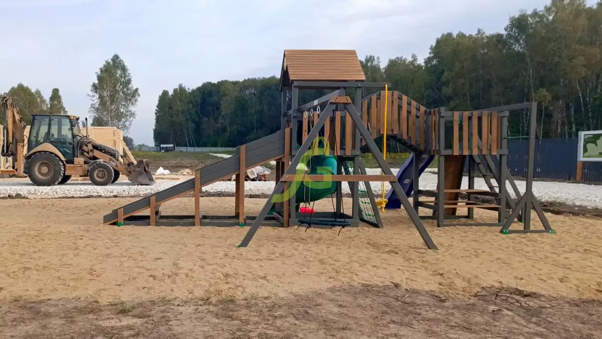 Комплекс с заливной деревянной горкой. Эконом вариант от нашего бренда