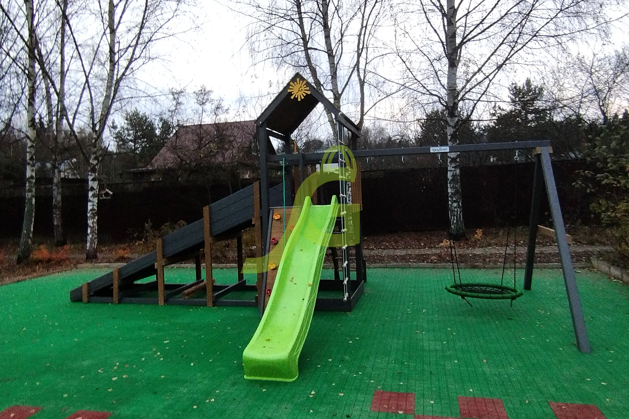 Большой спортивный комплекс с горкой качелями