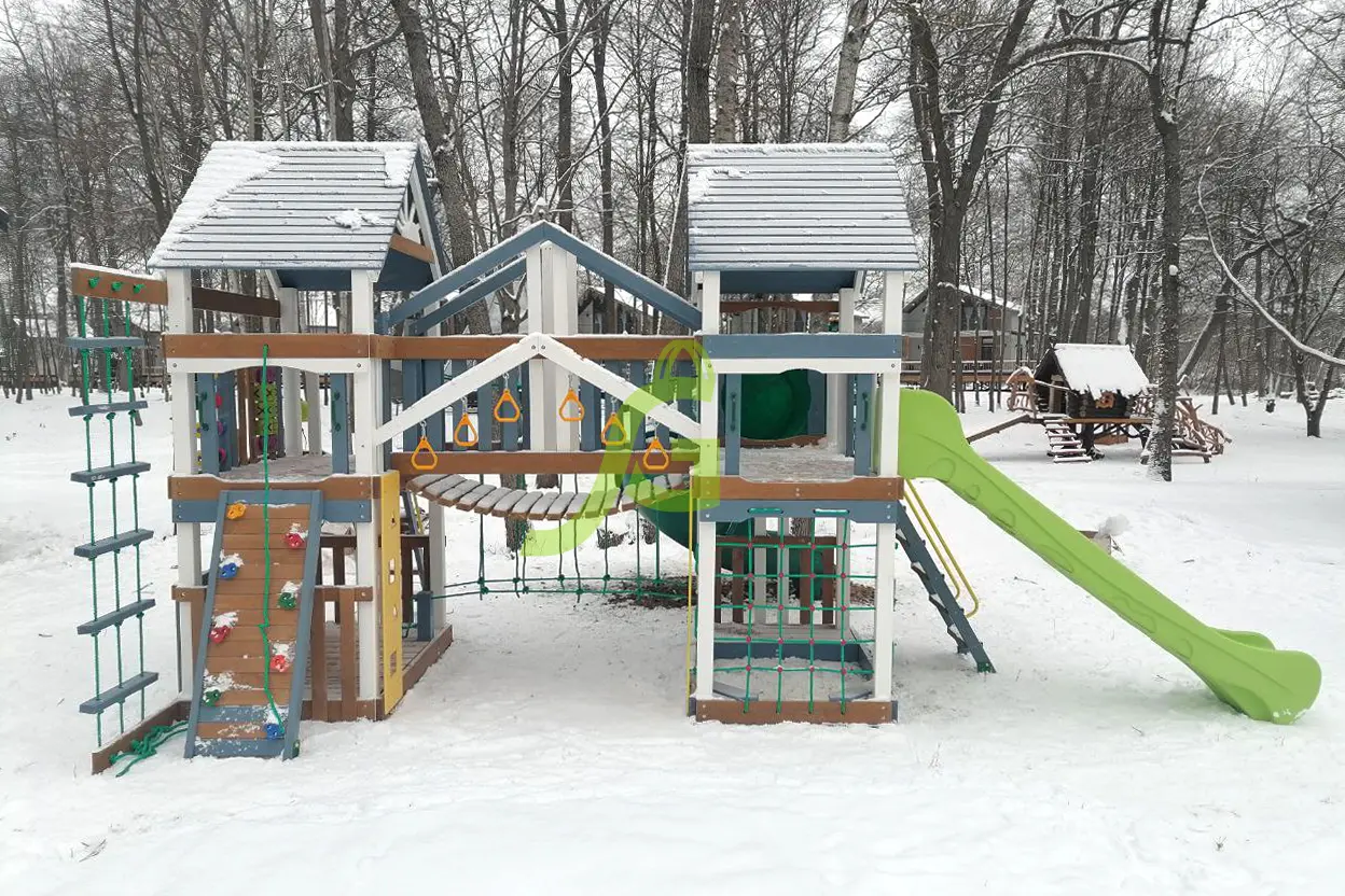 Состоит из двух ярких игровых башен, связанных между собой подвесным мостиком переходом.