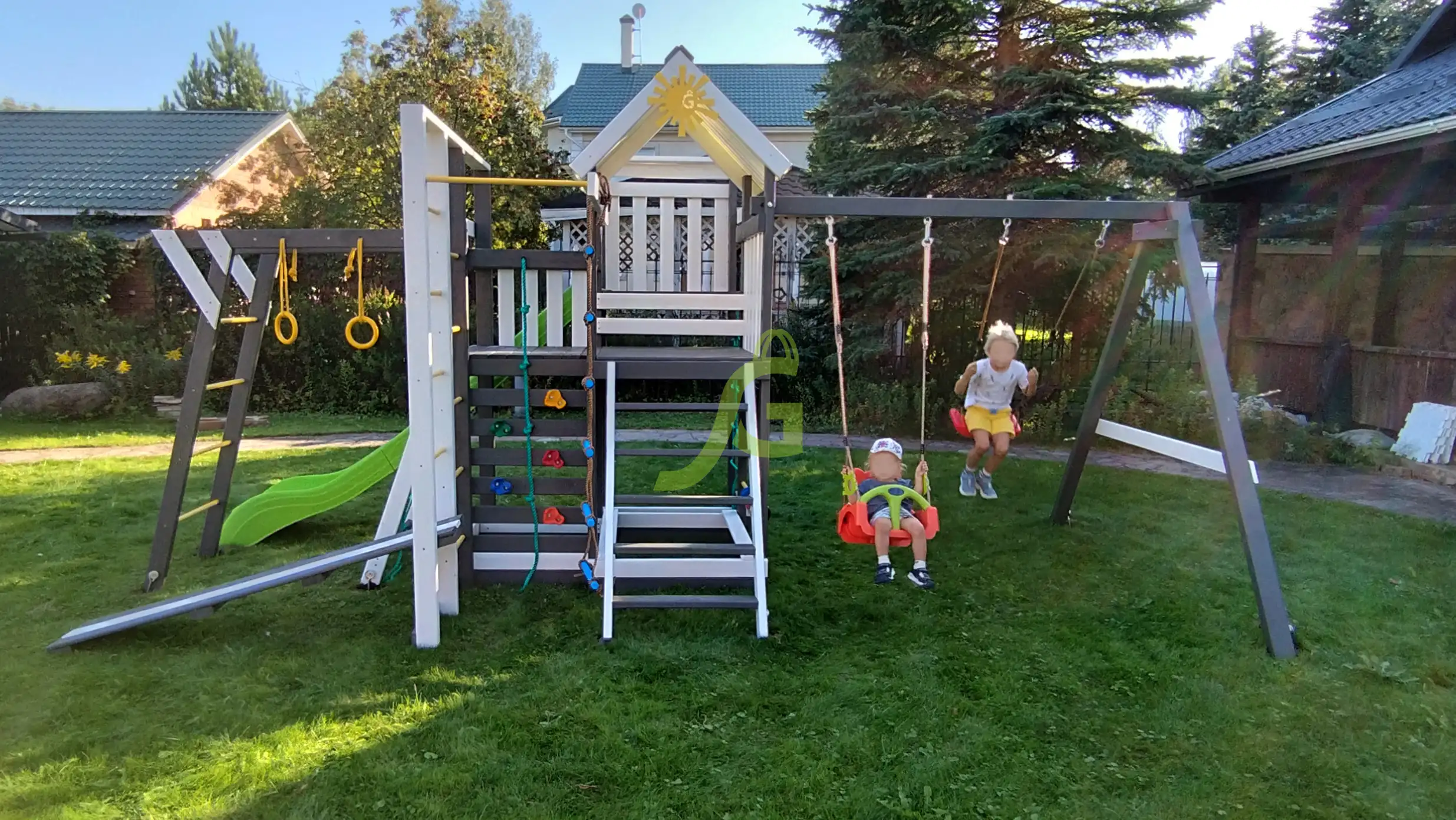 Компактная конструкция предназначена для игр небольшой компании детей, преимущество - многофункциональность. Игровой комплекс состоит из разных модулей, способствующих правильной и безопасной организации активностей