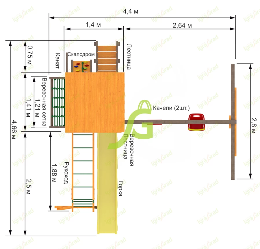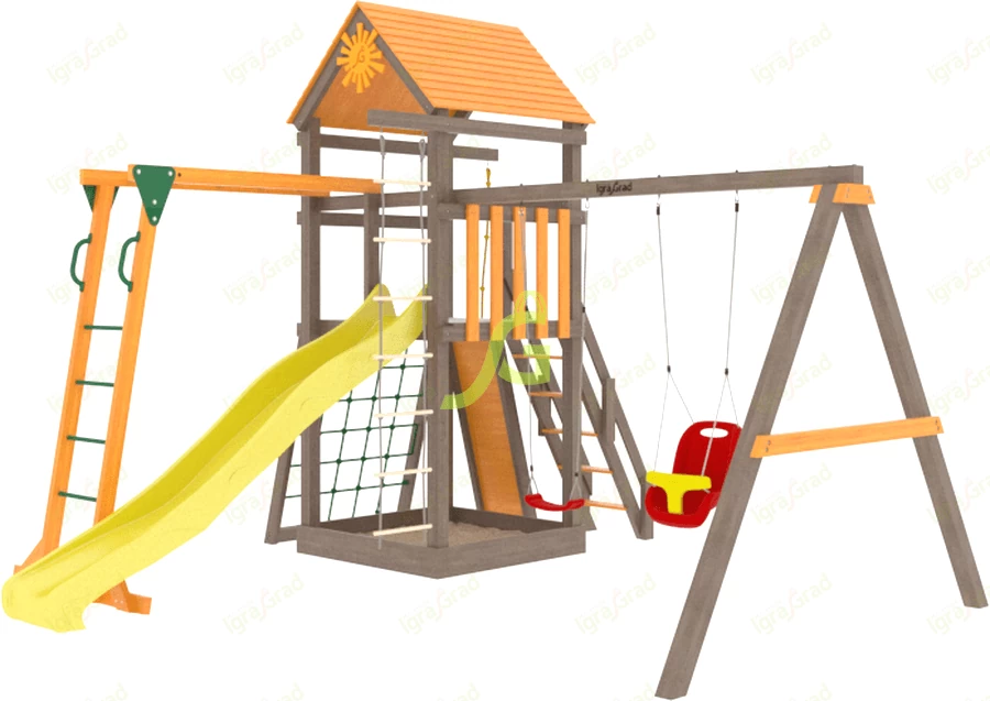 Внешний вид и конструкция элементов детской площадки могут незначительно отличаться от изображений на сайте в связи с возможными доработками со стороны производителя, направленными на повышение качества и безопасности продукции.