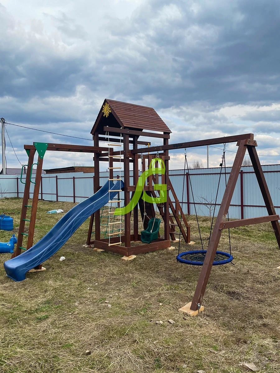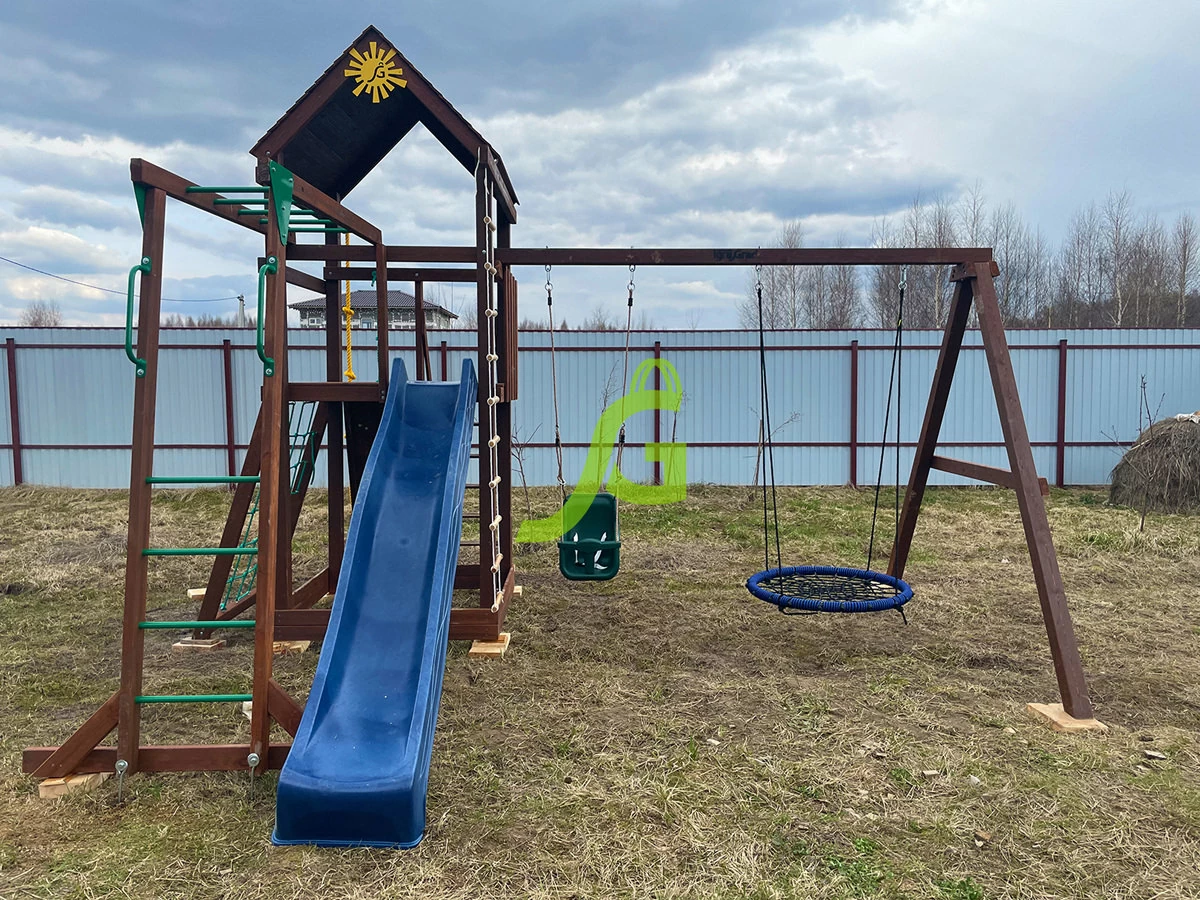 Обращаем Ваше внимание, что цвет установленной детской площадки может отличаться от представленных изображений на сайте. Специфика окраски нетоксичными пропитками допускает отклонения в цветовой гамме отгружаемых изделий вследствие различного цвета натурального природного сырья и естественных компонентов, используемых для производства площадок.