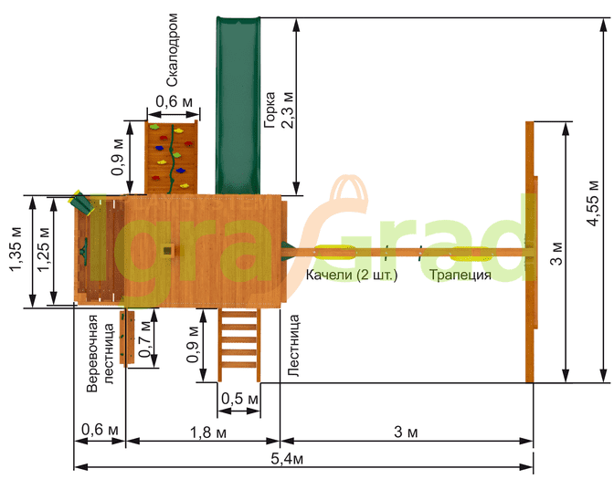 Габариты игрового комплекса для детей составляют: