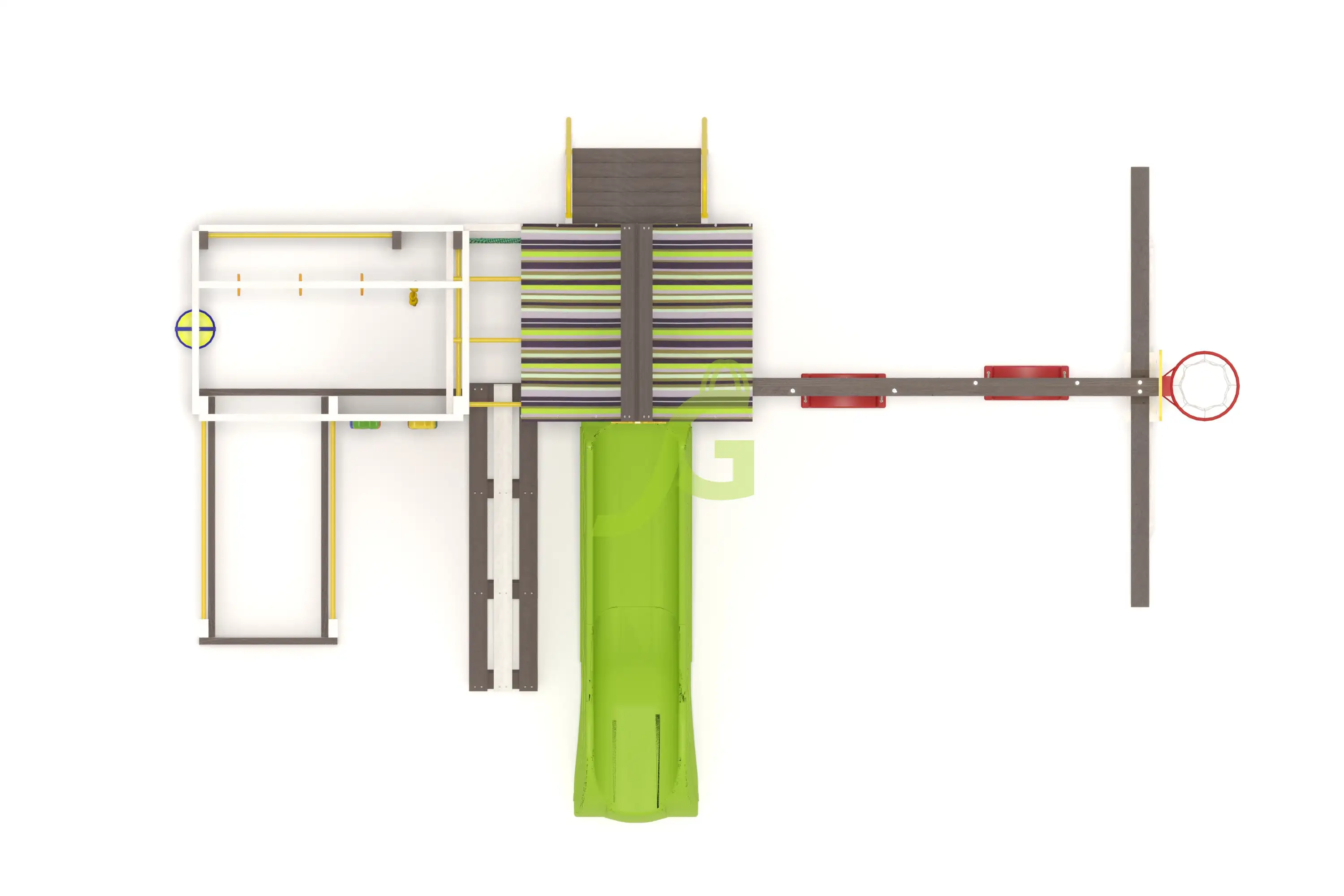 - - Безопасность и Надежность: Все элементы рассчитаны строго под детские нагрузки. Прочные материалы, продуманная конструкция. Тентованная крыша на башне обеспечивает защиту от солнца.