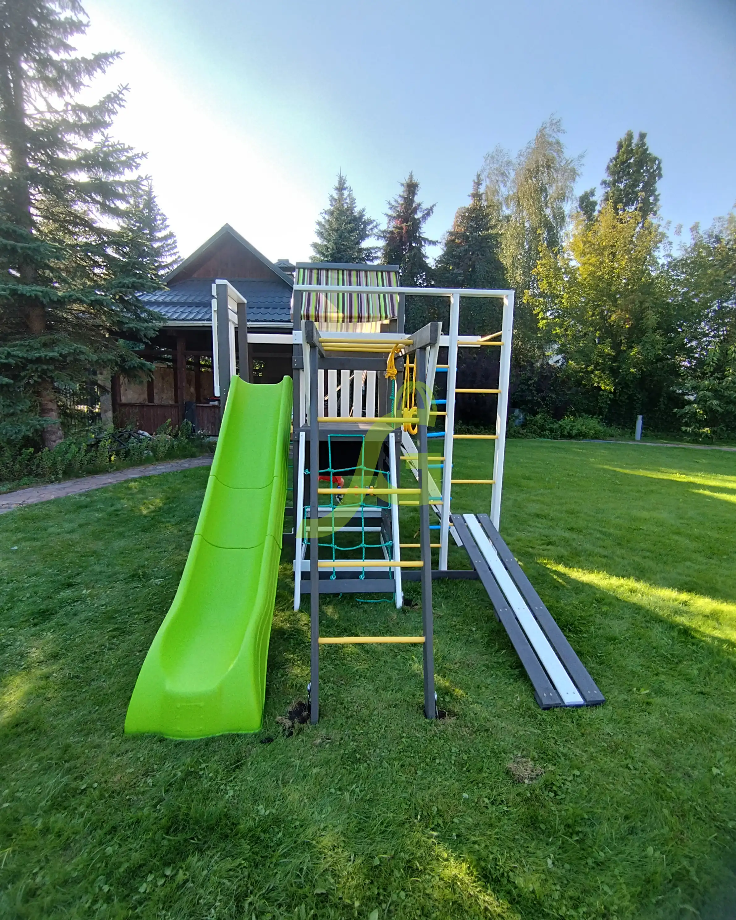- - Продуманные высоты: Горка-труба (1.5 м) для осторожных первых спусков в уютной трубе и большая составная горка (2.85 м) для смельчаков – все под контролем.