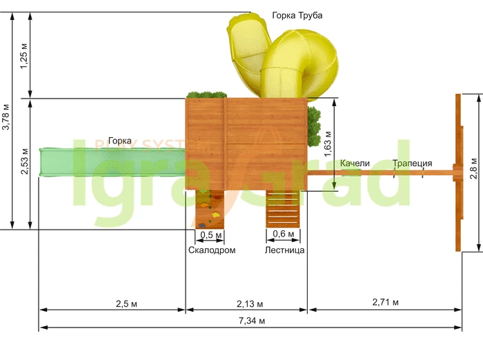 Внешний вид и конструкция элементов детской площадки могут незначительно отличаться от изображений на сайте в связи с возможными доработками со стороны производителя, направленными на повышение качества и безопасности продукции.
