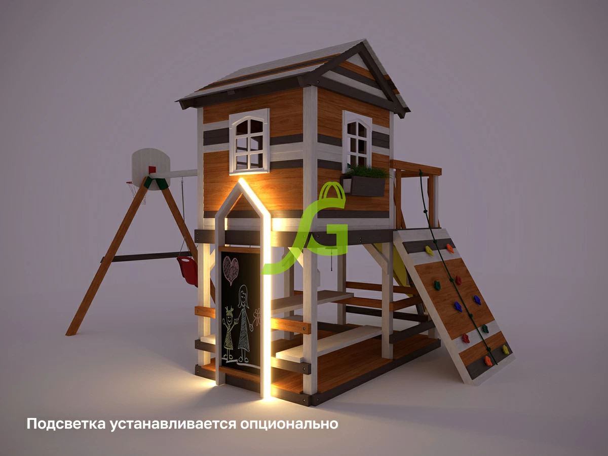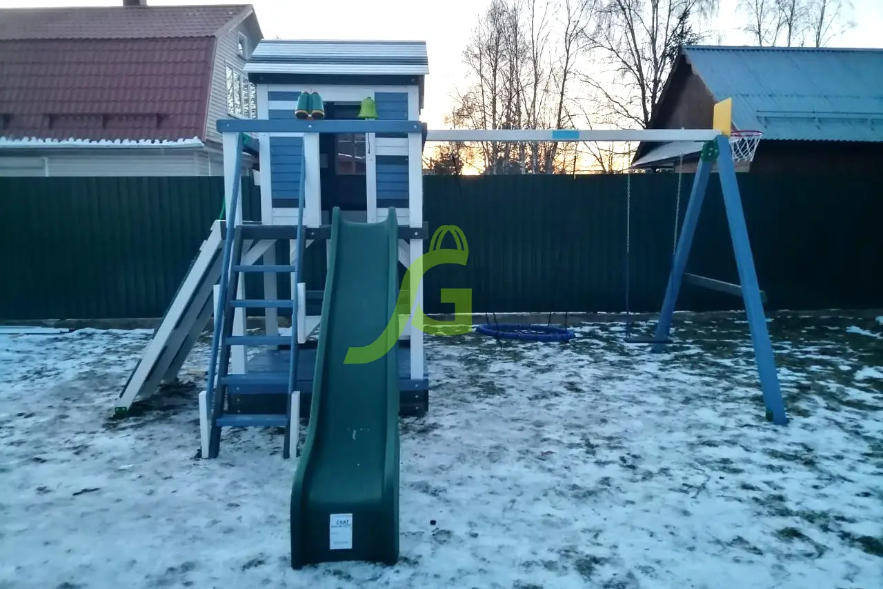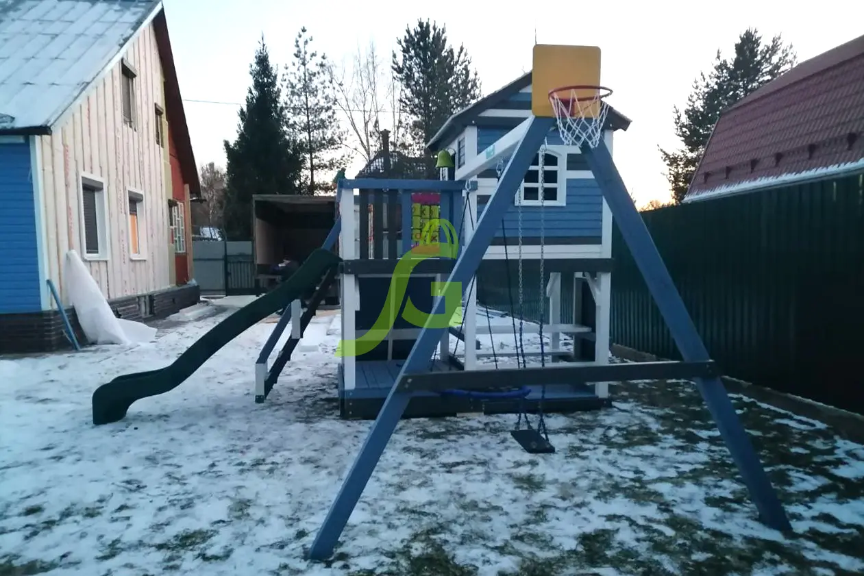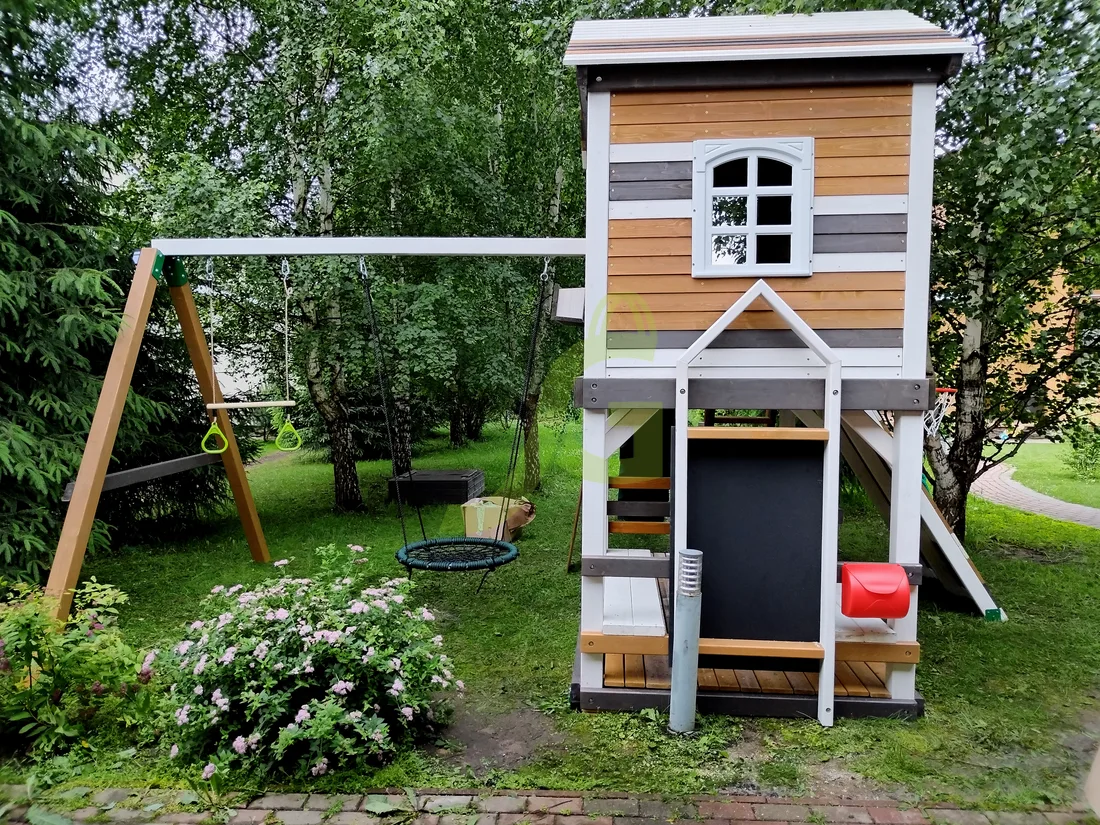 Обращаем Ваше внимание, что цвет установленной детской площадки может отличаться от представленных изображений на сайте. Специфика окраски нетоксичными пропитками допускает отклонения в цветовой гамме отгружаемых изделий вследствие различного цвета натурального природного сырья и естественных компонентов, используемых для производства площадок.