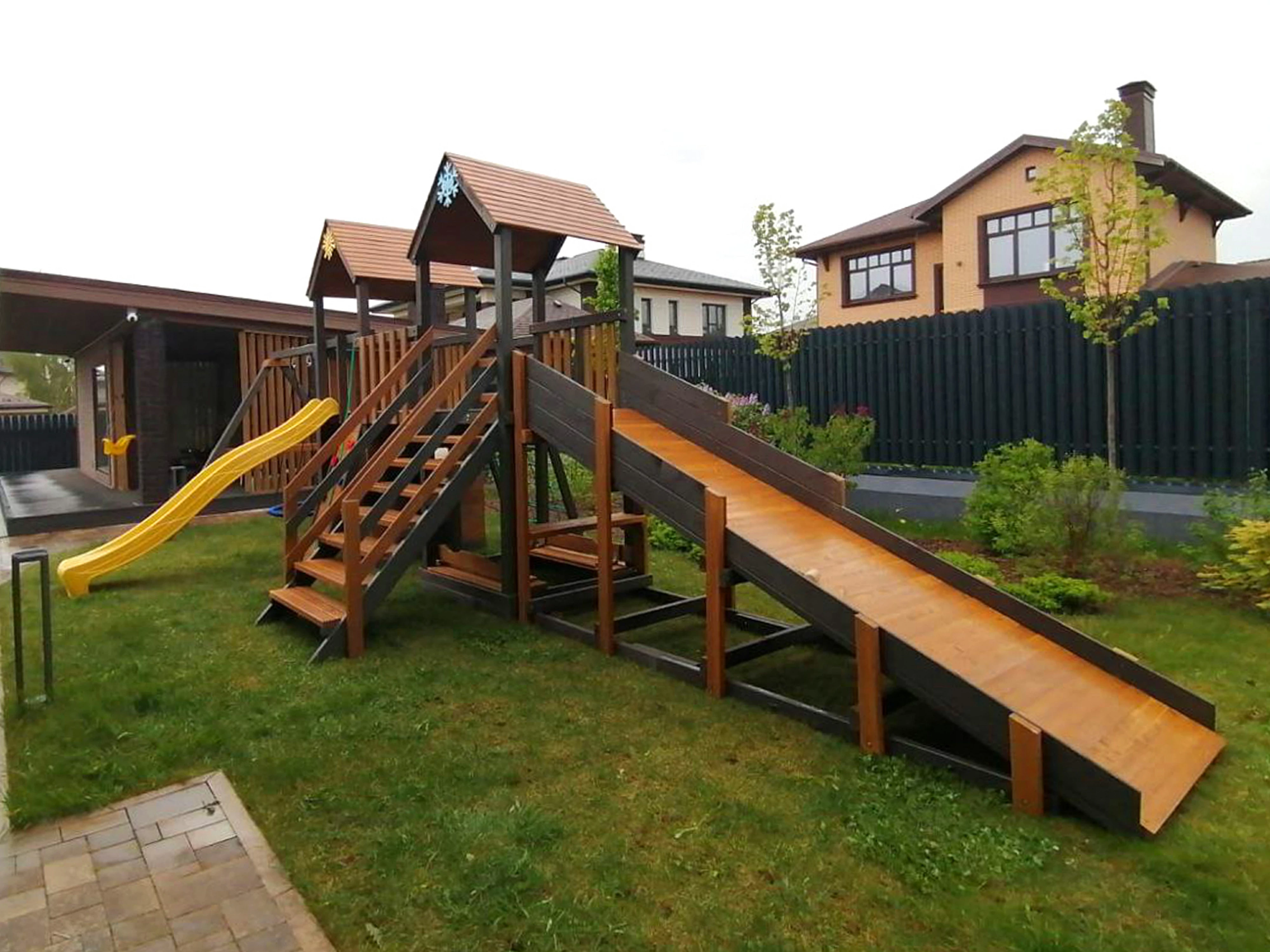 Обращаем Ваше внимание, что цвет установленной детской площадки может отличаться от представленных изображений на сайте. Специфика окраски нетоксичными пропитками допускает отклонения в цветовой гамме отгружаемых изделий вследствие различного цвета натурального природного сырья и естественных компонентов, используемых для производства площадок.