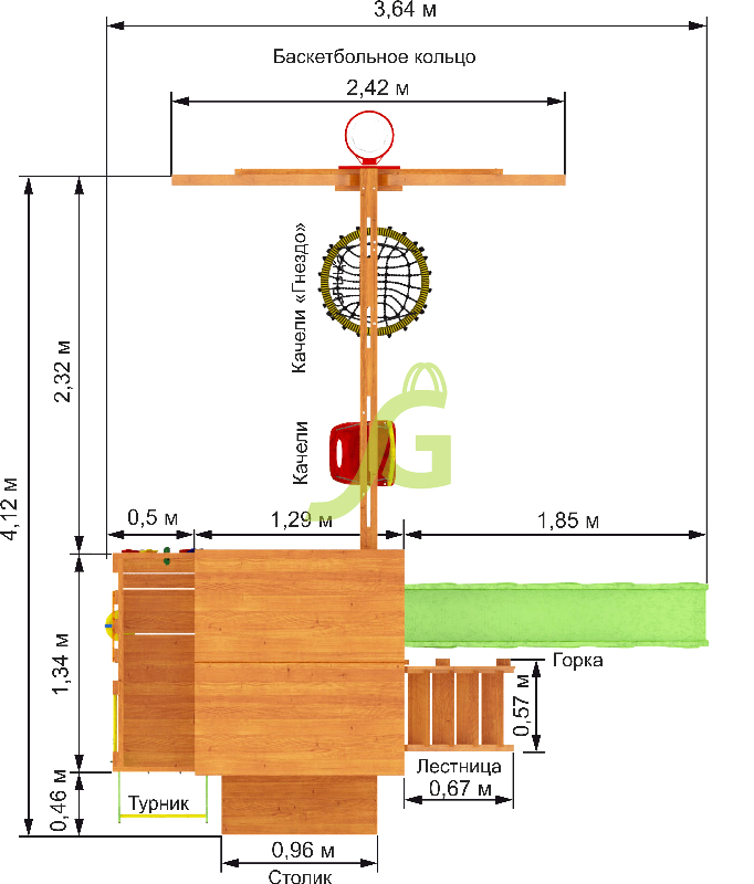 Обращаем Ваше внимание, что цвет установленной детской площадки может отличаться от представленных изображений на сайте. Специфика окраски нетоксичными пропитками допускает отклонения в цветовой гамме отгружаемых изделий вследствие различного цвета натурального природного сырья и естественных компонентов, используемых для производства площадок.