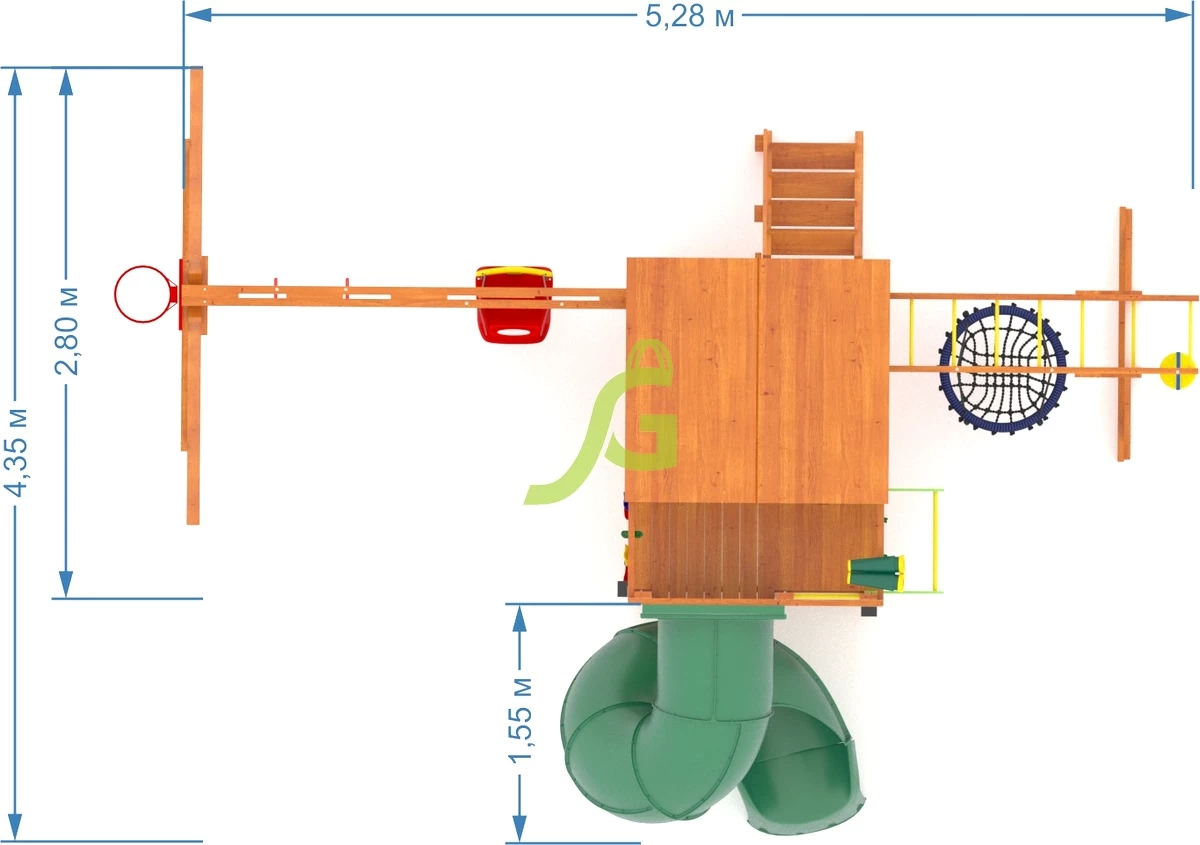Обращаем Ваше внимание, что цвет установленной детской площадки может отличаться от представленных изображений на сайте. Специфика окраски нетоксичными пропитками допускает отклонения в цветовой гамме отгружаемых изделий вследствие различного цвета натурального природного сырья и естественных компонентов, используемых для производства площадок.