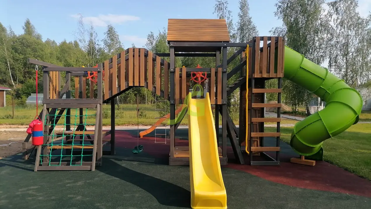 Обращаем Ваше внимание, что цвет установленной детской площадки может отличаться от представленных изображений на сайте. Специфика окраски нетоксичными пропитками допускает отклонения в цветовой гамме отгружаемых изделий вследствие различного цвета натурального природного сырья и естественных компонентов, используемых для производства площадок.