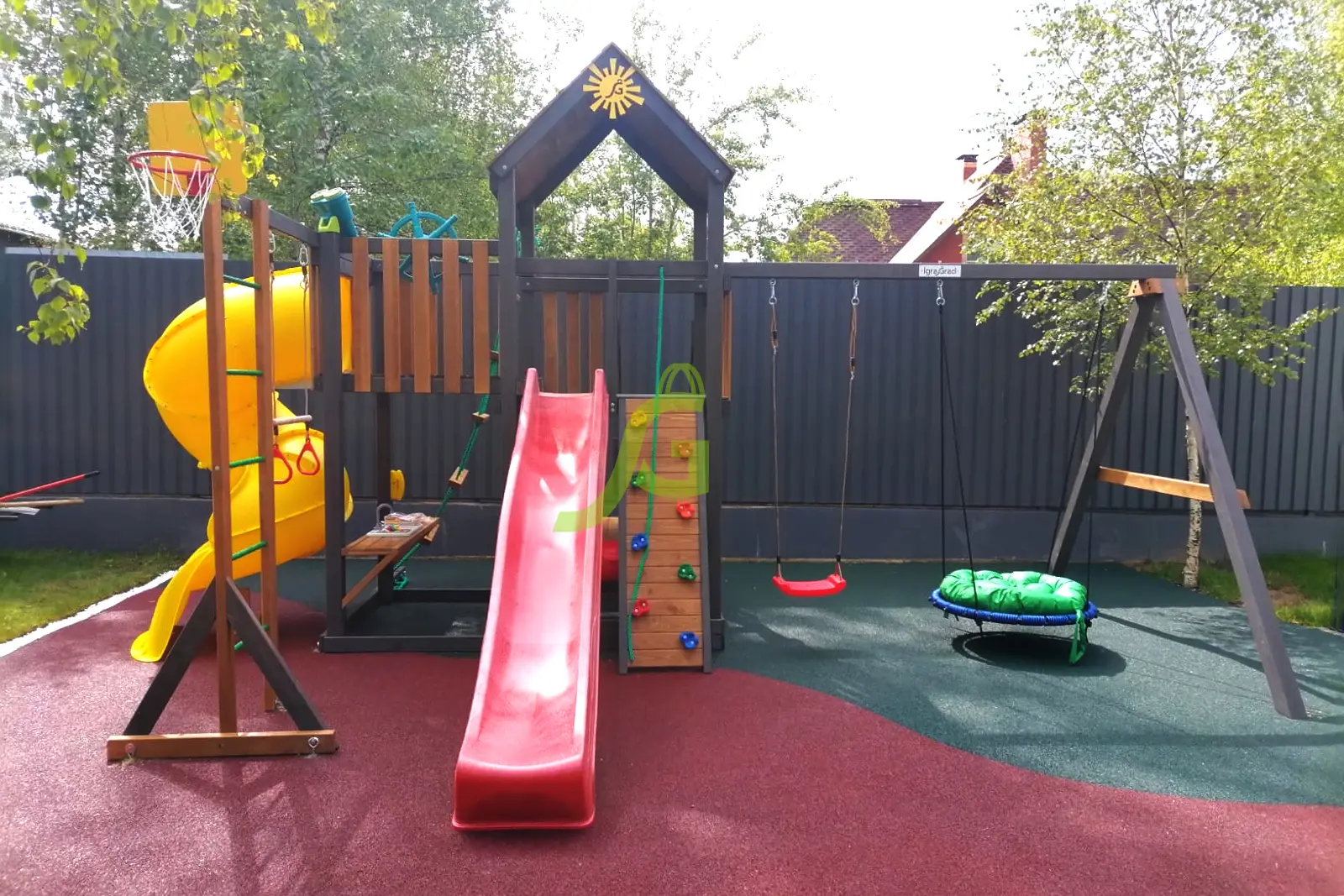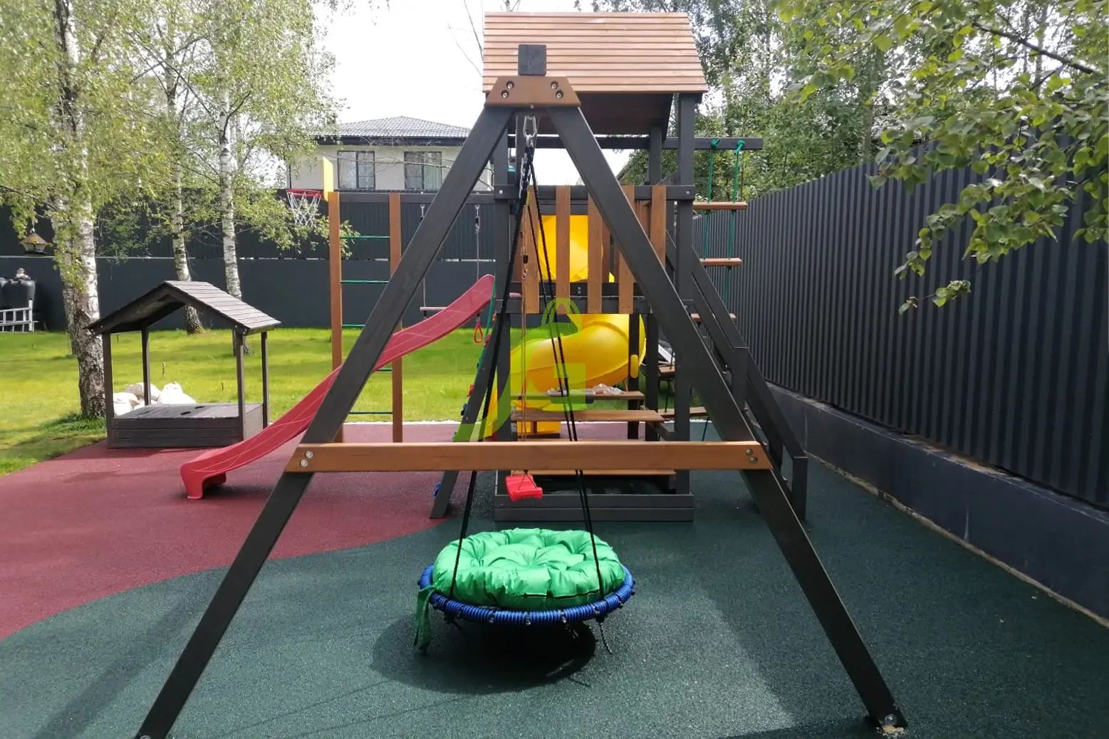 Обращаем Ваше внимание, что цвет установленной детской площадки может отличаться от представленных изображений на сайте. Специфика окраски нетоксичными пропитками допускает отклонения в цветовой гамме отгружаемых изделий вследствие различного цвета натурального природного сырья и естественных компонентов, используемых для производства площадок.