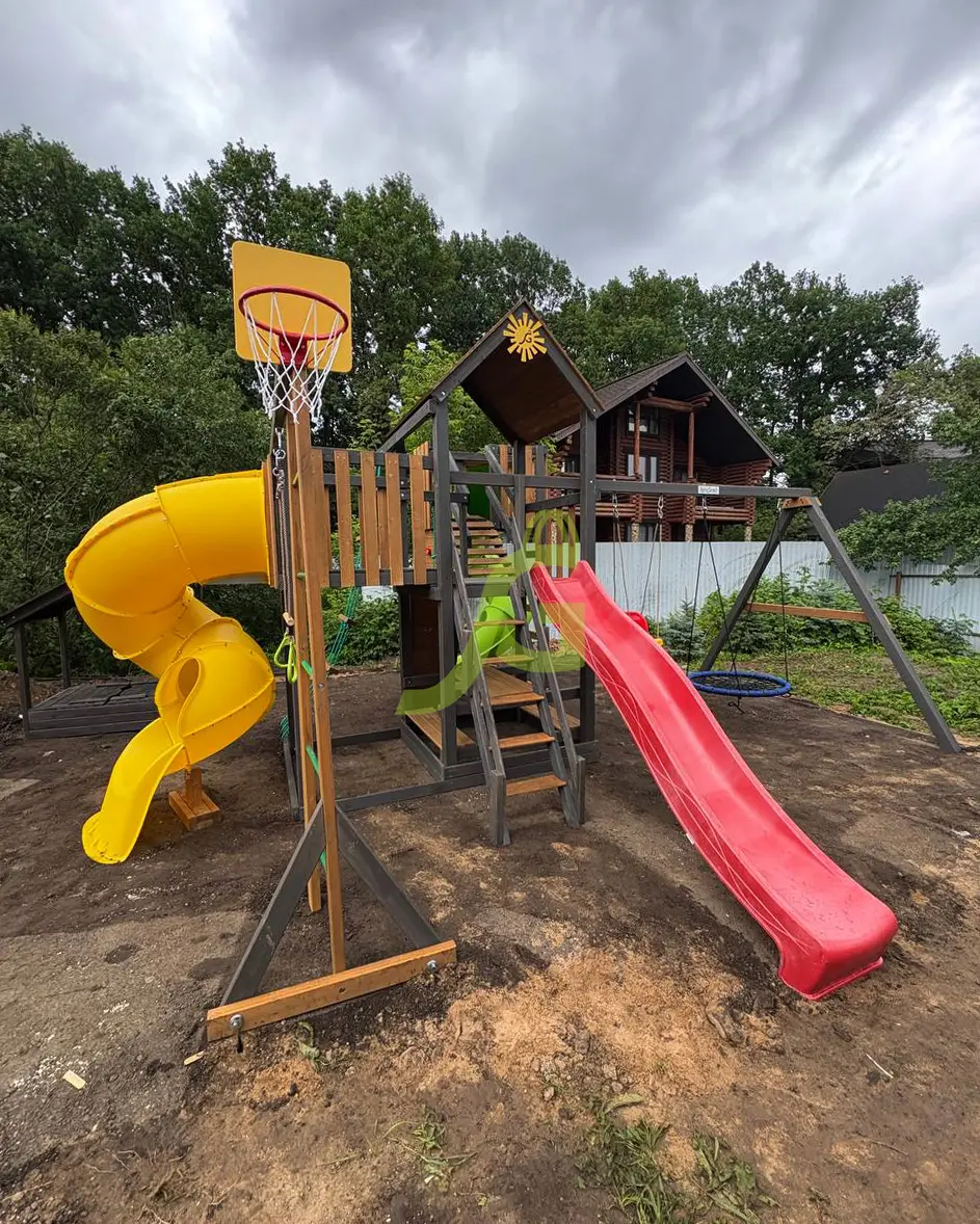 Обращаем Ваше внимание, что цвет установленной детской площадки может отличаться от представленных изображений на сайте. Специфика окраски нетоксичными пропитками допускает отклонения в цветовой гамме отгружаемых изделий вследствие различного цвета натурального природного сырья и естественных компонентов, используемых для производства площадок.
