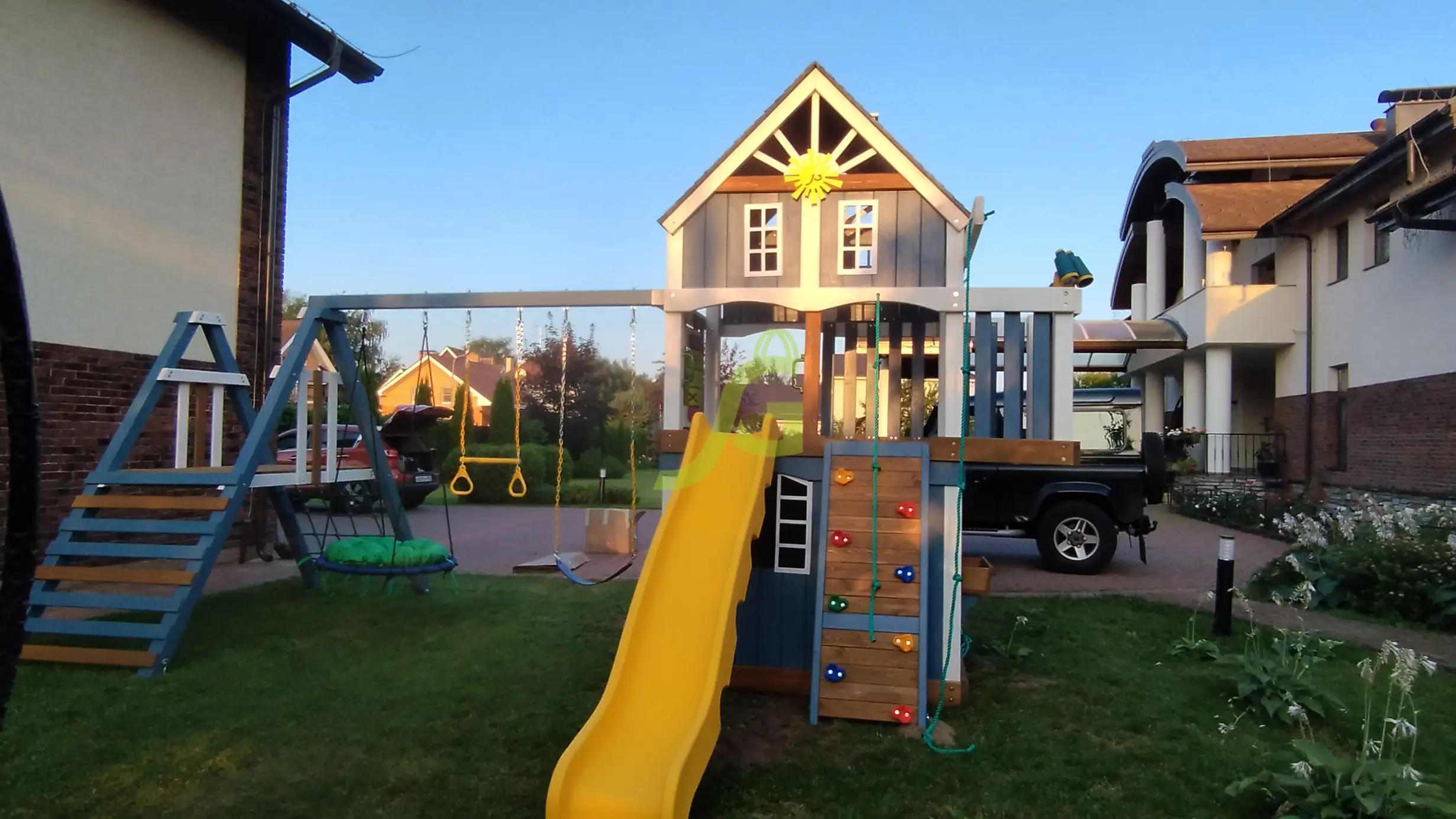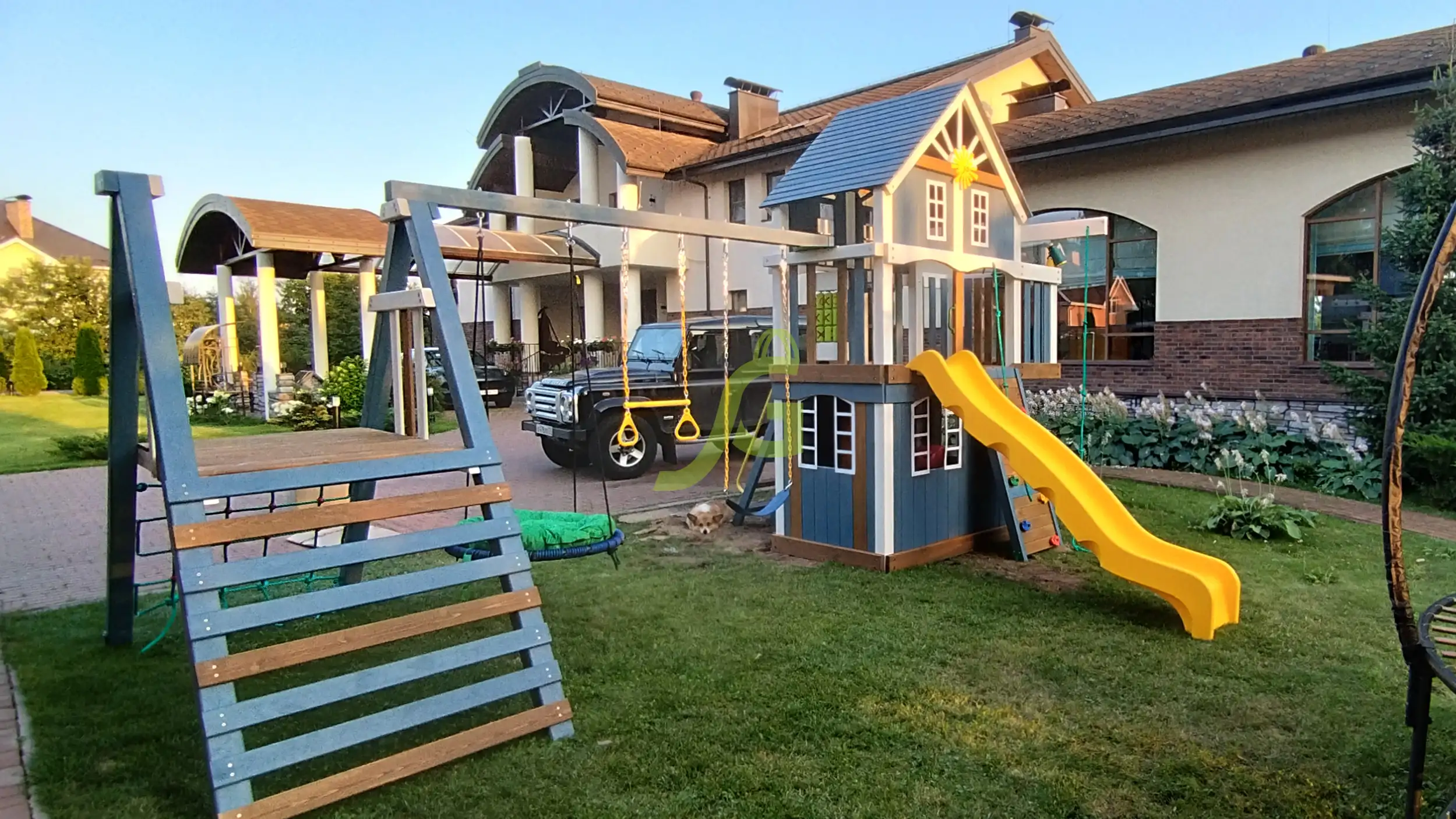 Обращаем Ваше внимание, что цвет установленной детской площадки может отличаться от представленных изображений на сайте. Специфика окраски нетоксичными пропитками допускает отклонения в цветовой гамме отгружаемых изделий вследствие различного цвета натурального природного сырья и естественных компонентов, используемых для производства площадок.