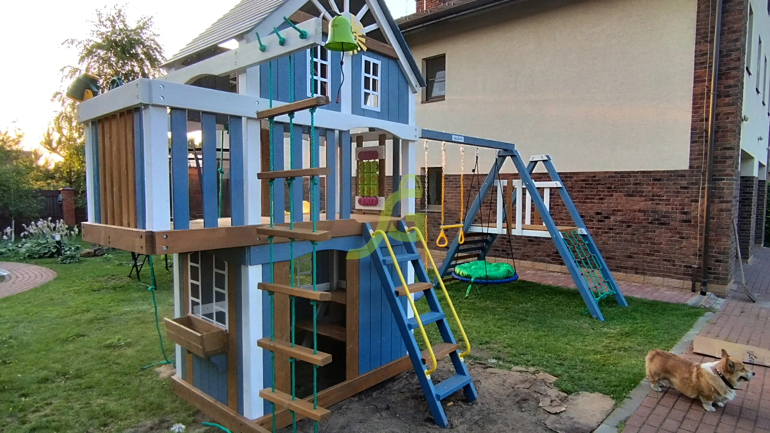 - - двухуровневый домик с красивыми пластиковыми окошками зашитый снизу;