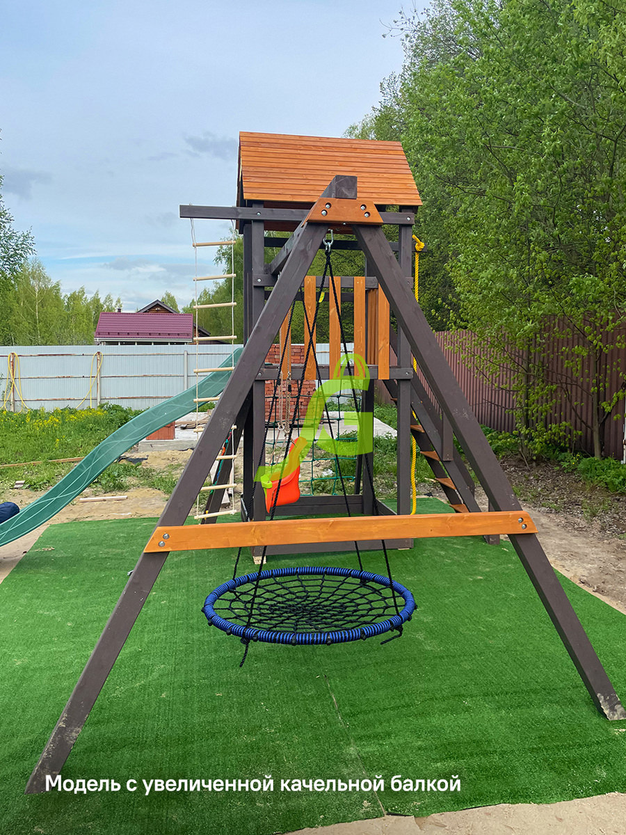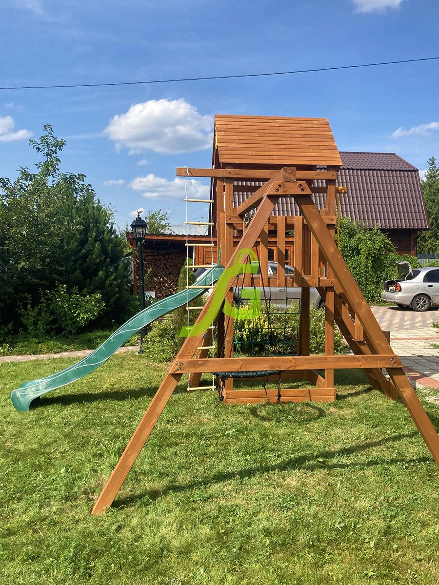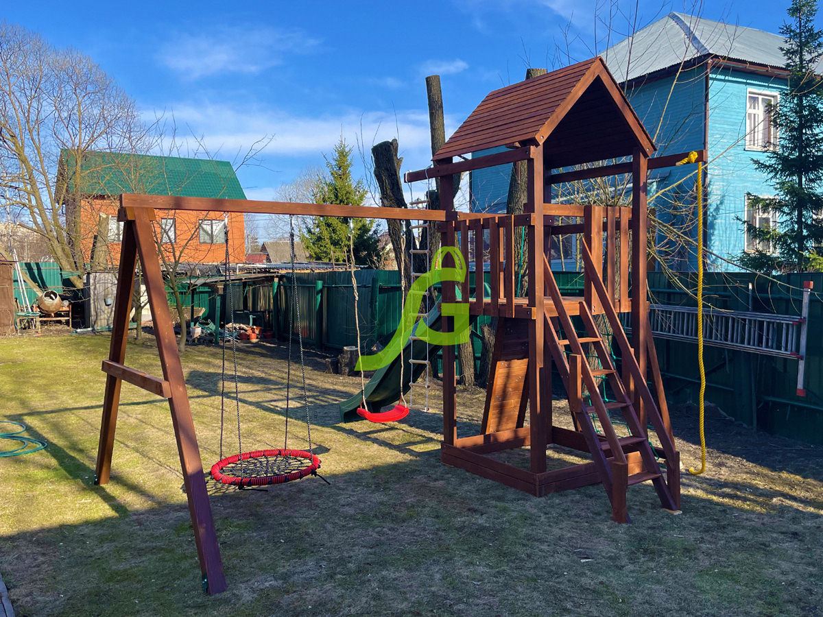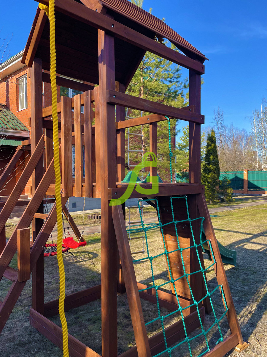 Обращаем Ваше внимание, что цвет установленной детской площадки может отличаться от представленных изображений на сайте. Специфика окраски нетоксичными пропитками допускает отклонения в цветовой гамме отгружаемых изделий вследствие различного цвета натурального природного сырья и естественных компонентов, используемых для производства площадок.