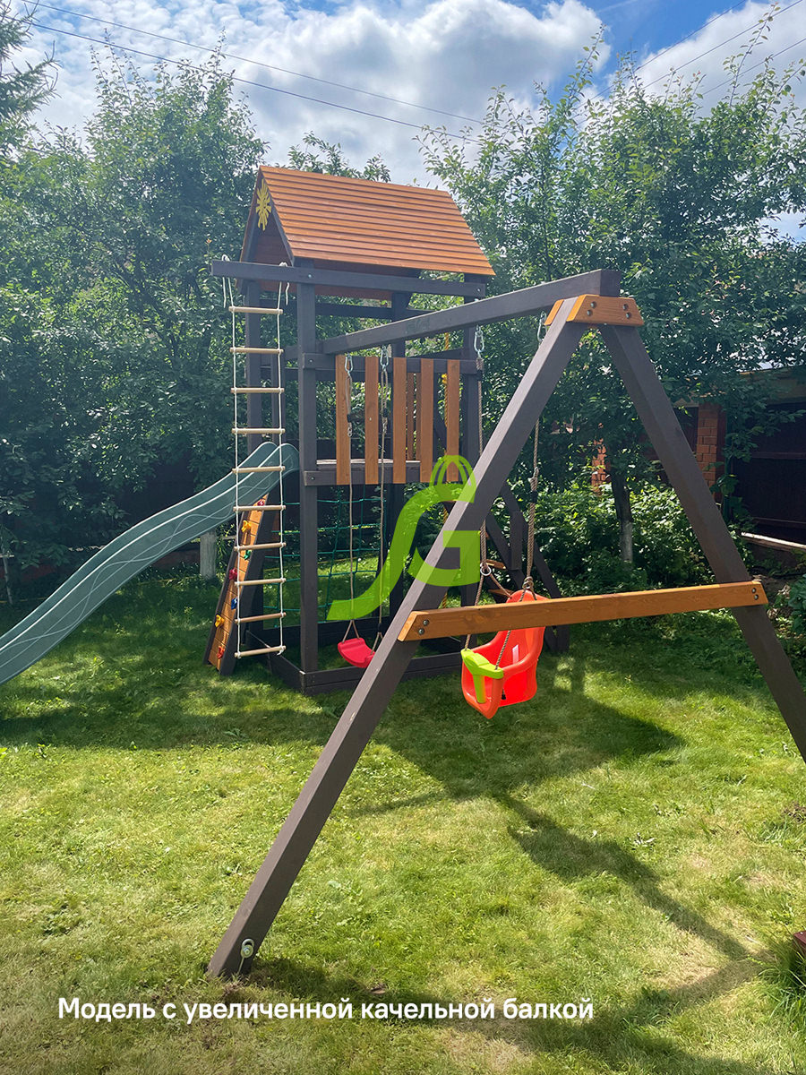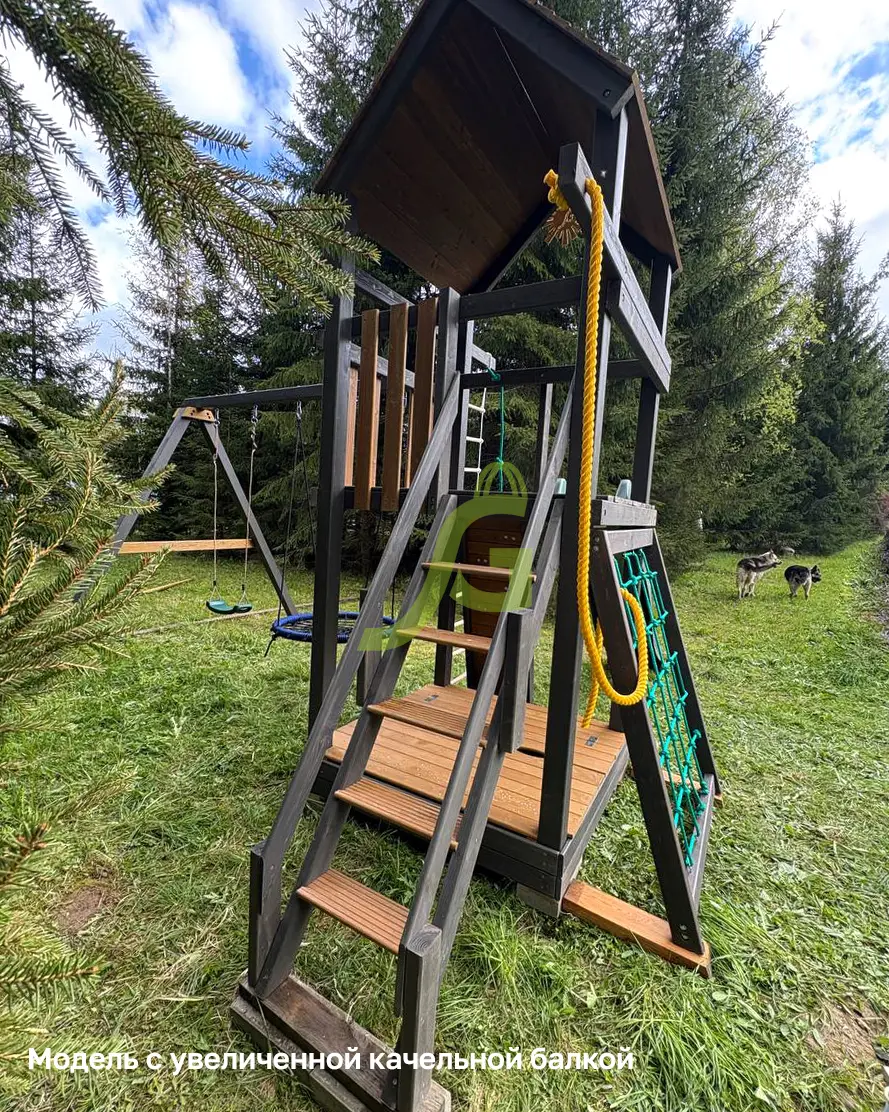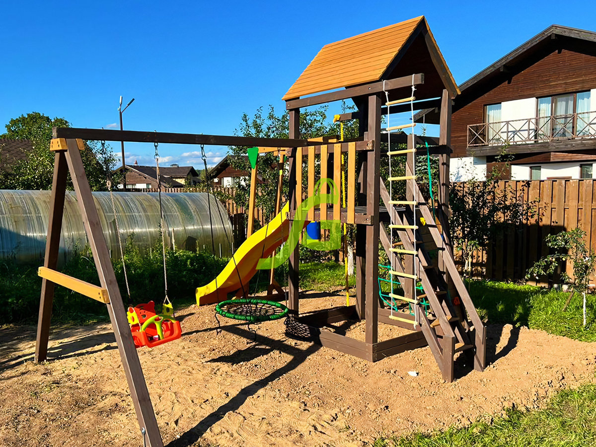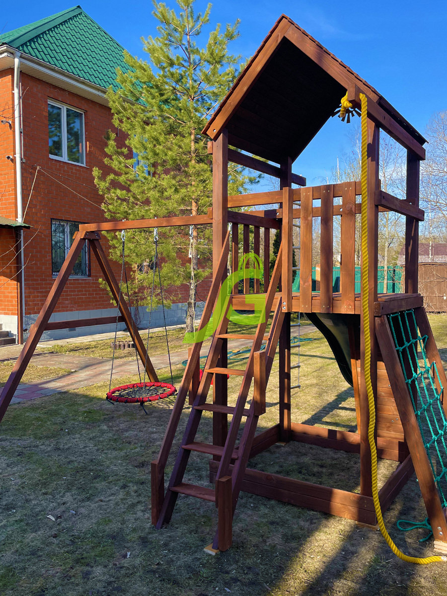 Обращаем Ваше внимание, что цвет установленной детской площадки может отличаться от представленных изображений на сайте. Специфика окраски нетоксичными пропитками допускает отклонения в цветовой гамме отгружаемых изделий вследствие различного цвета натурального природного сырья и естественных компонентов, используемых для производства площадок.