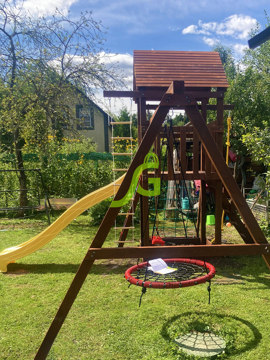 По желанию клиента игровая площадка может быть укомплектована дополнительными элементами. Можно заменить обычные качели на качели-гнездо, которые очень удобны в использовании. Наши специалисты обсудят с вами все детали заказа и быстро оформят заявку.