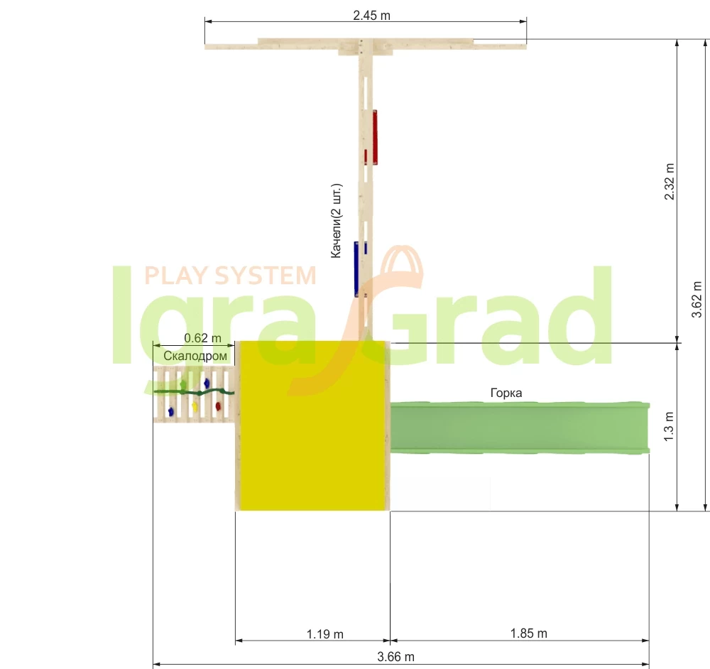 Обращаем Ваше внимание, что цвет установленной детской площадки может отличаться от представленных изображений на сайте.