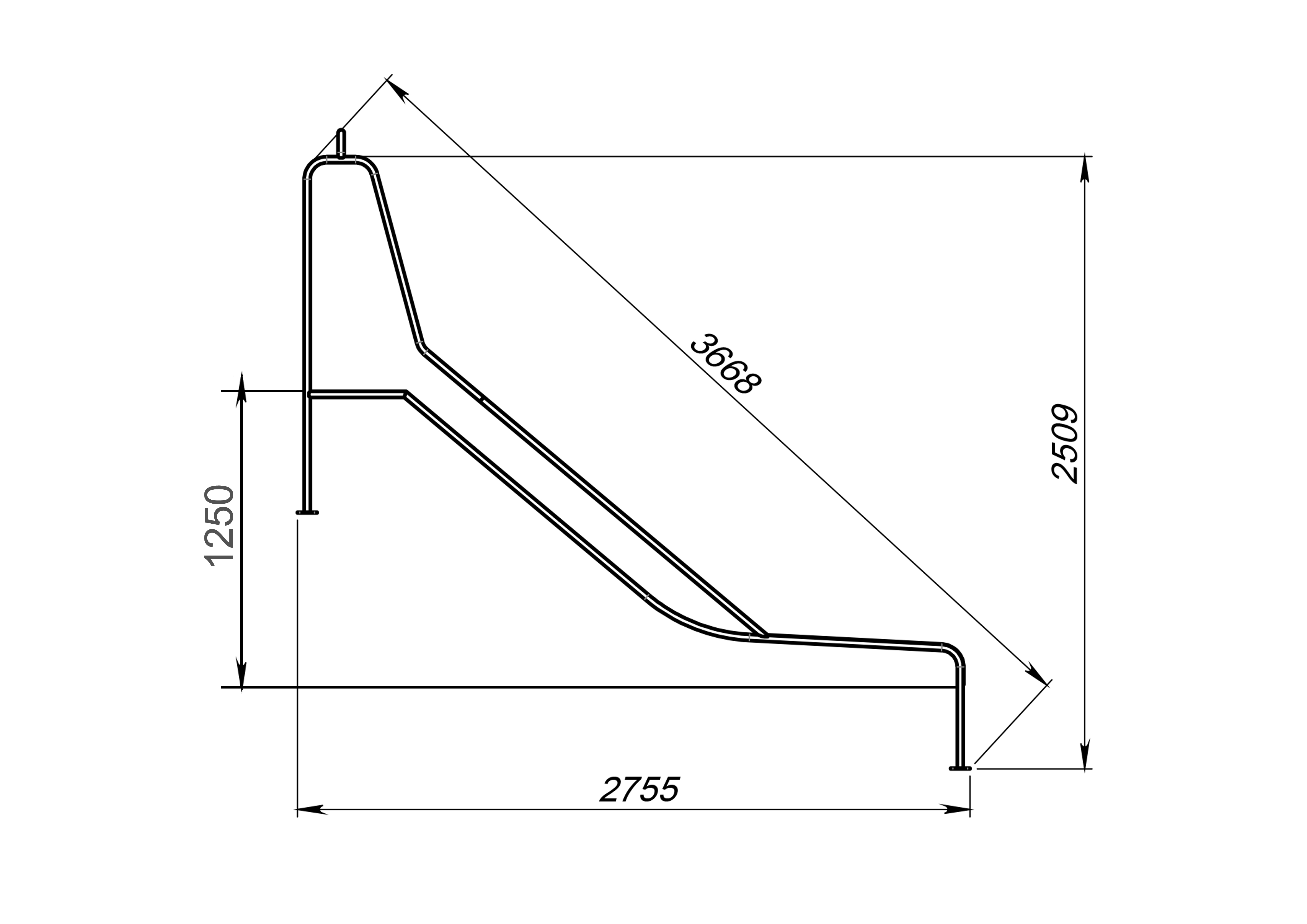 Металлический скат для интеграции в искусственный рельеф. Изготовлен из нержавеющей стали AISI 304 (толщина 2 мм). Конструкция предназначена для укладки на подготовленное основание холма с углом 40°.