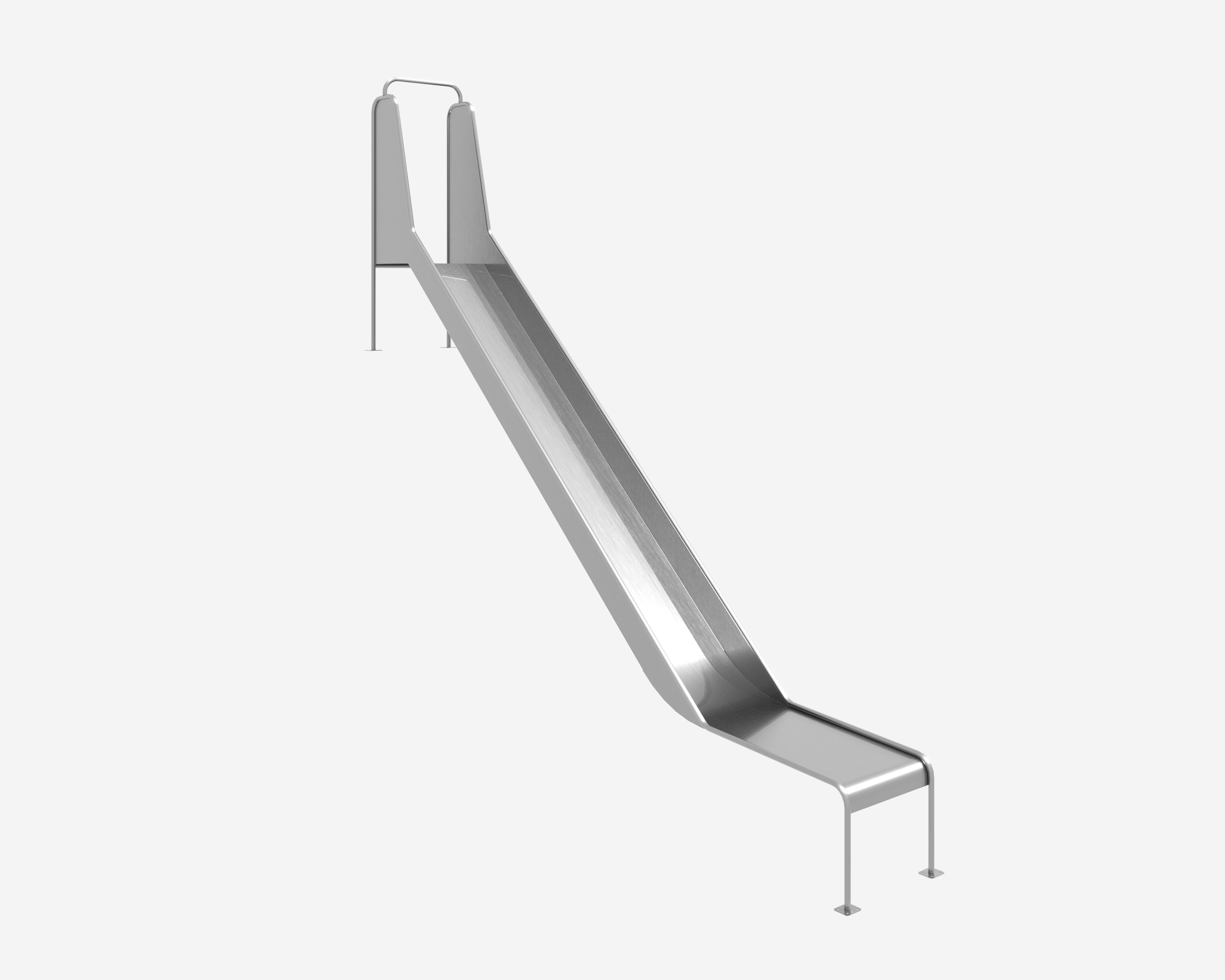 Металлический скат для интеграции в искусственный рельеф. Изготовлен из нержавеющей стали AISI 304 (толщина 2 мм). Конструкция предназначена для укладки на подготовленное основание холма с углом 40°.