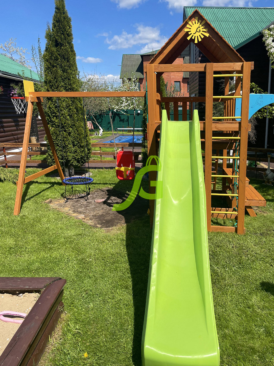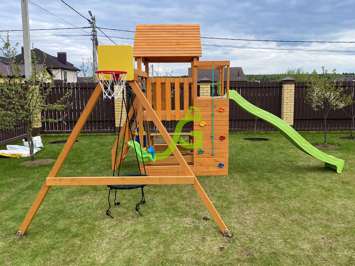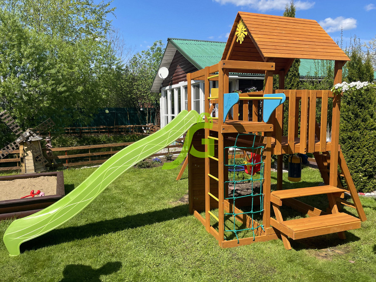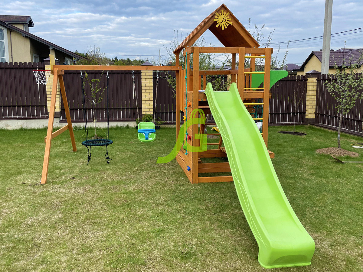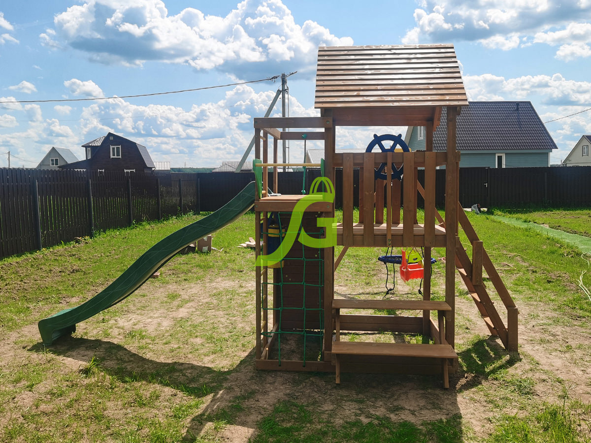 Обращаем Ваше внимание, что цвет установленной детской площадки может отличаться от представленных изображений на сайте. Специфика окраски нетоксичными пропитками допускает отклонения в цветовой гамме отгружаемых изделий вследствие различного цвета натурального природного сырья и естественных компонентов, используемых для производства площадок.