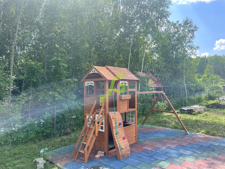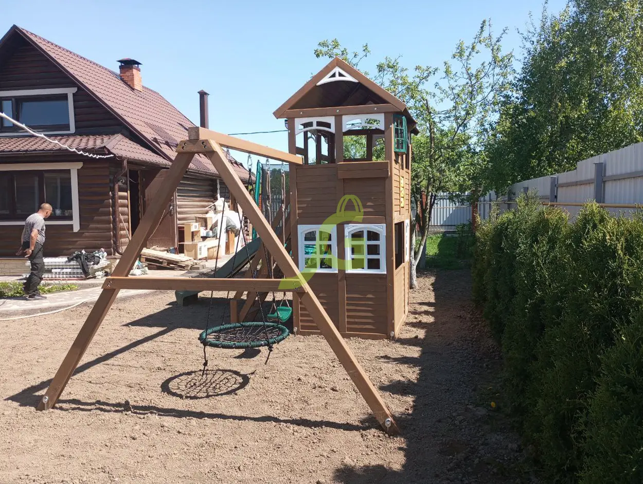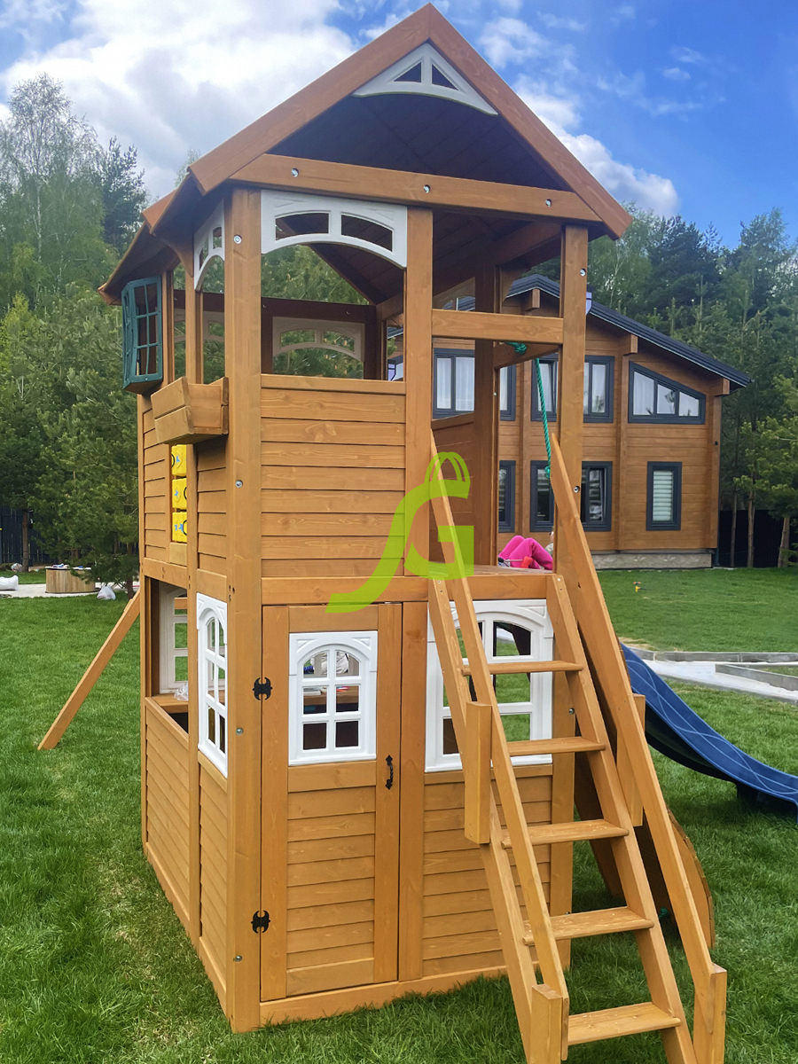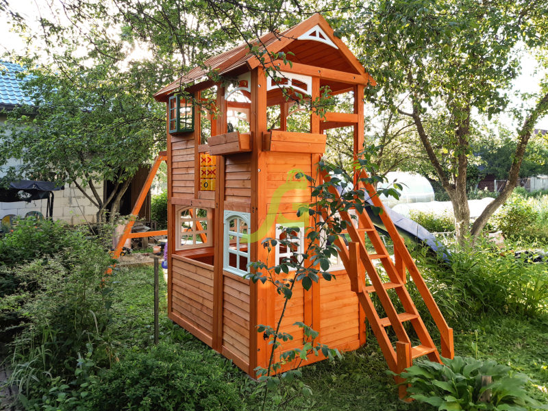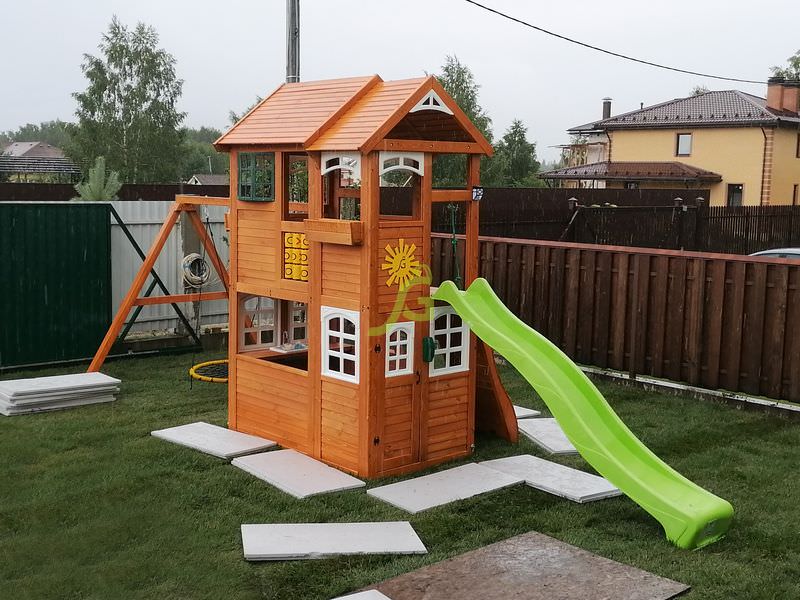 - - Закрытый двухуровневый игровой домик с дверью, деревянной крышей;
