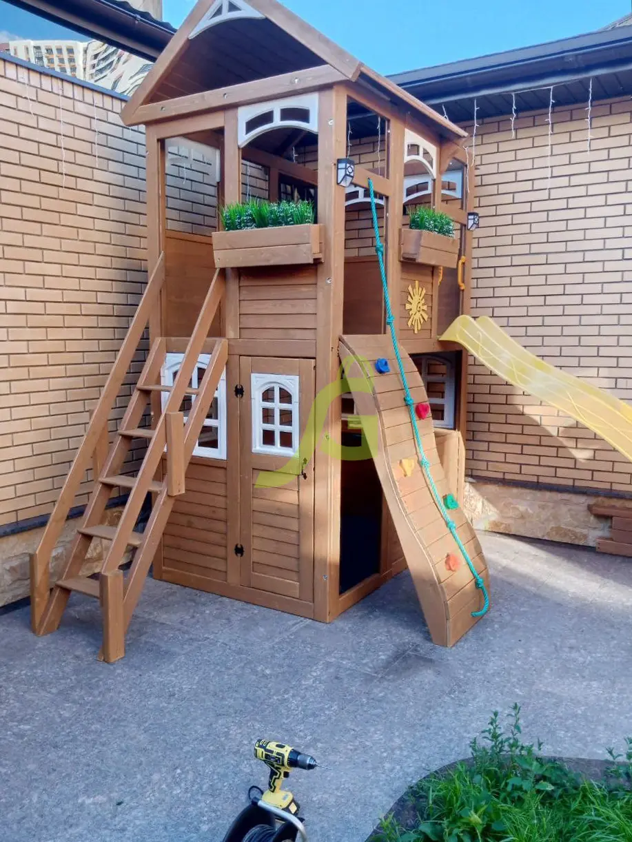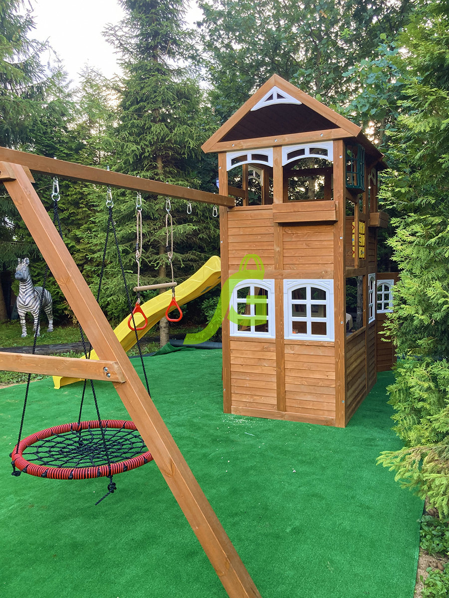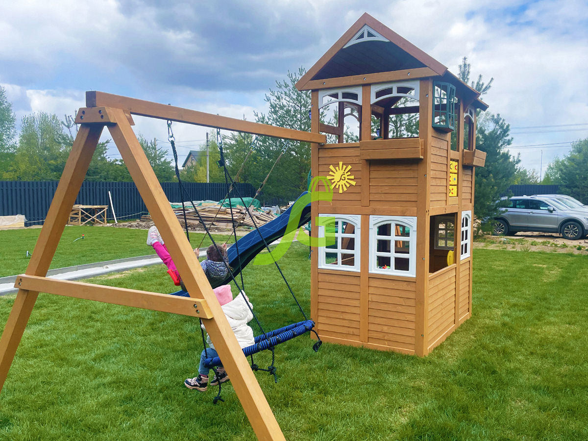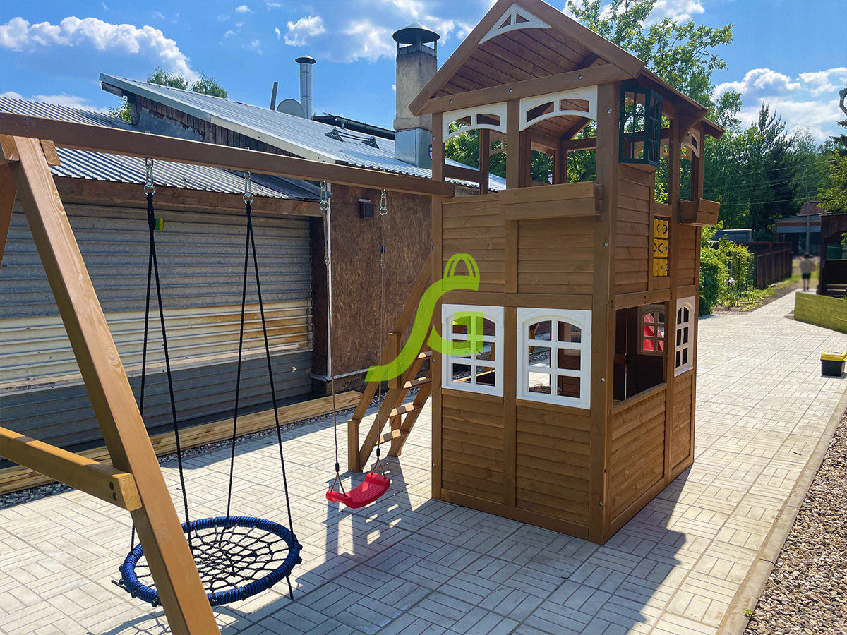 - - Закрытый двухуровневый игровой домик с дверью, деревянной крышей;