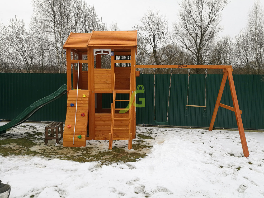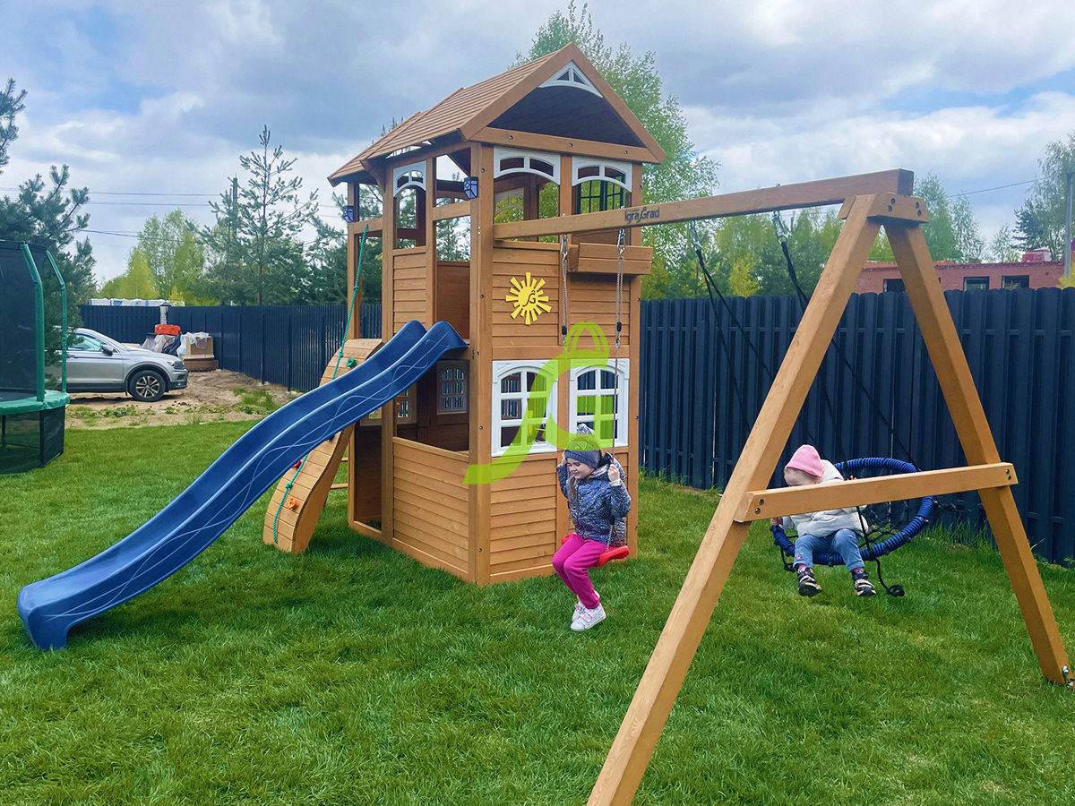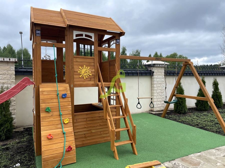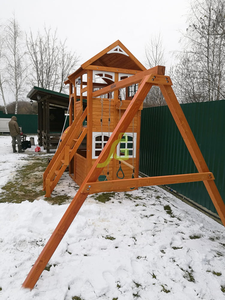 Обращаем Ваше внимание, что цвет установленной детской площадки может отличаться от представленных изображений на сайте. Специфика окраски нетоксичными пропитками допускает отклонения в цветовой гамме отгружаемых изделий вследствие различного цвета натурального природного сырья и естественных компонентов, используемых для производства площадок.