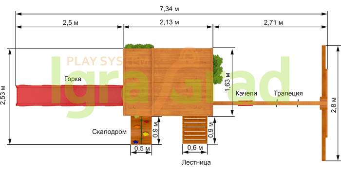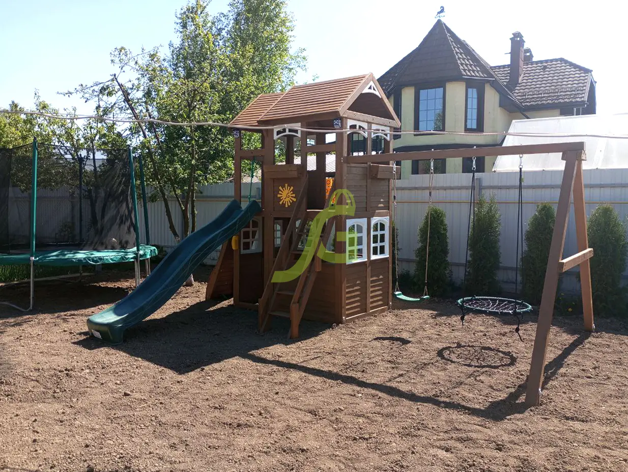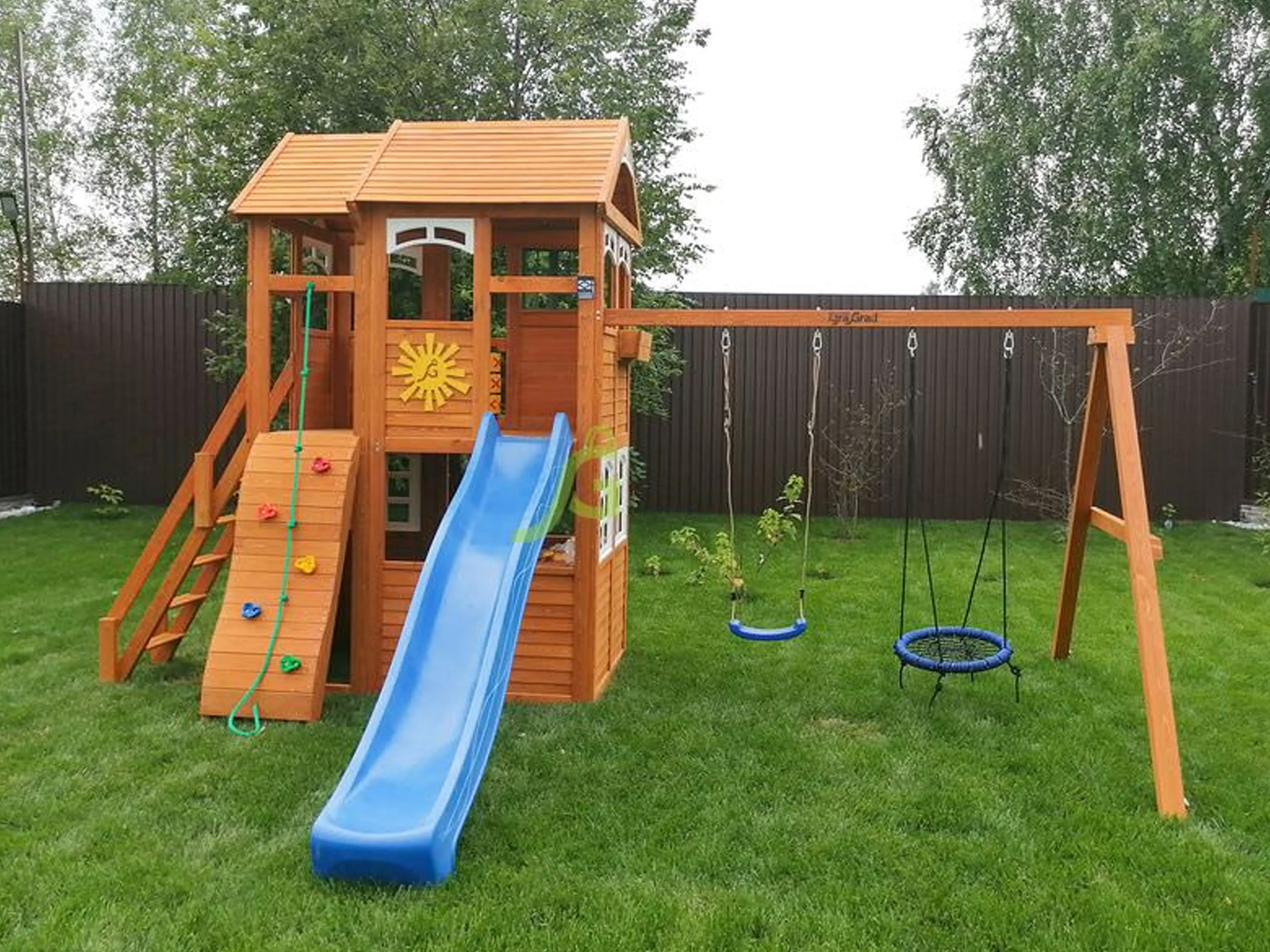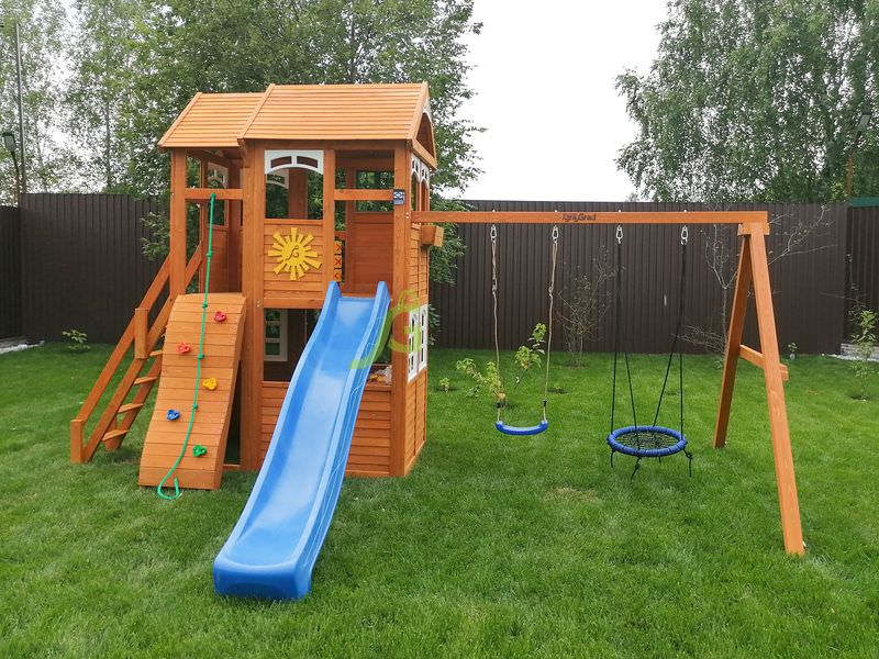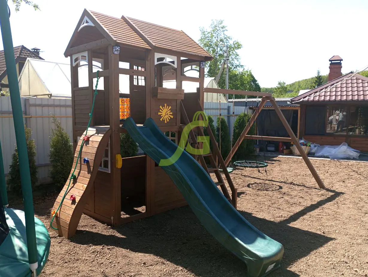Обращаем Ваше внимание, что цвет установленной детской площадки может отличаться от представленных изображений на сайте. Специфика окраски нетоксичными пропитками допускает отклонения в цветовой гамме отгружаемых изделий вследствие различного цвета натурального природного сырья и естественных компонентов, используемых для производства площадок.