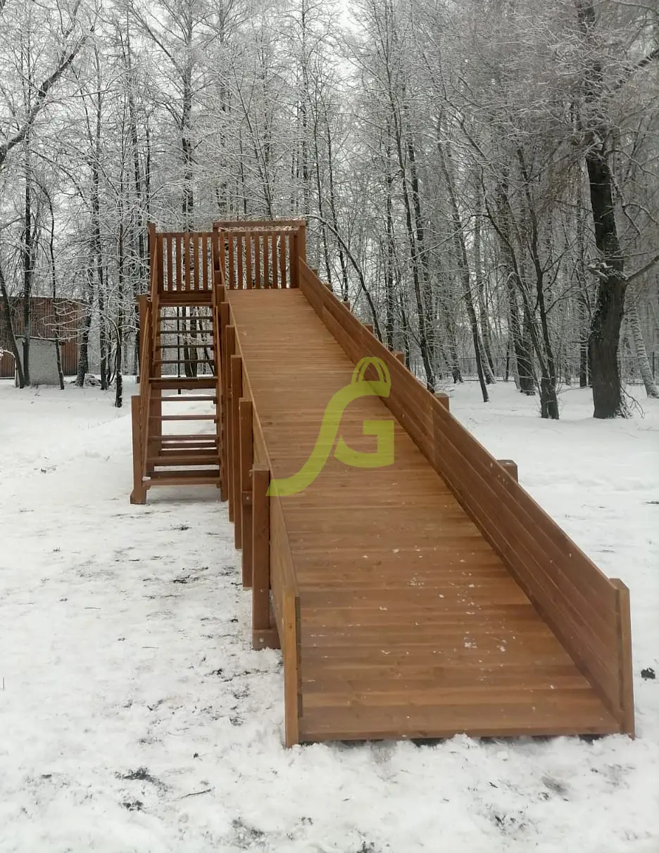 Мы предлагаем купить зимнюю деревянную горку Snow Fox Макси. Благодаря продуманному дизайну, её можно установить на территории детского сада, городских парков, возле многоэтажек, на небольшой полянке возле дачного домика. Выход есть всегда! Главное, правильно подобрать зимнюю горку для тюбинга.
