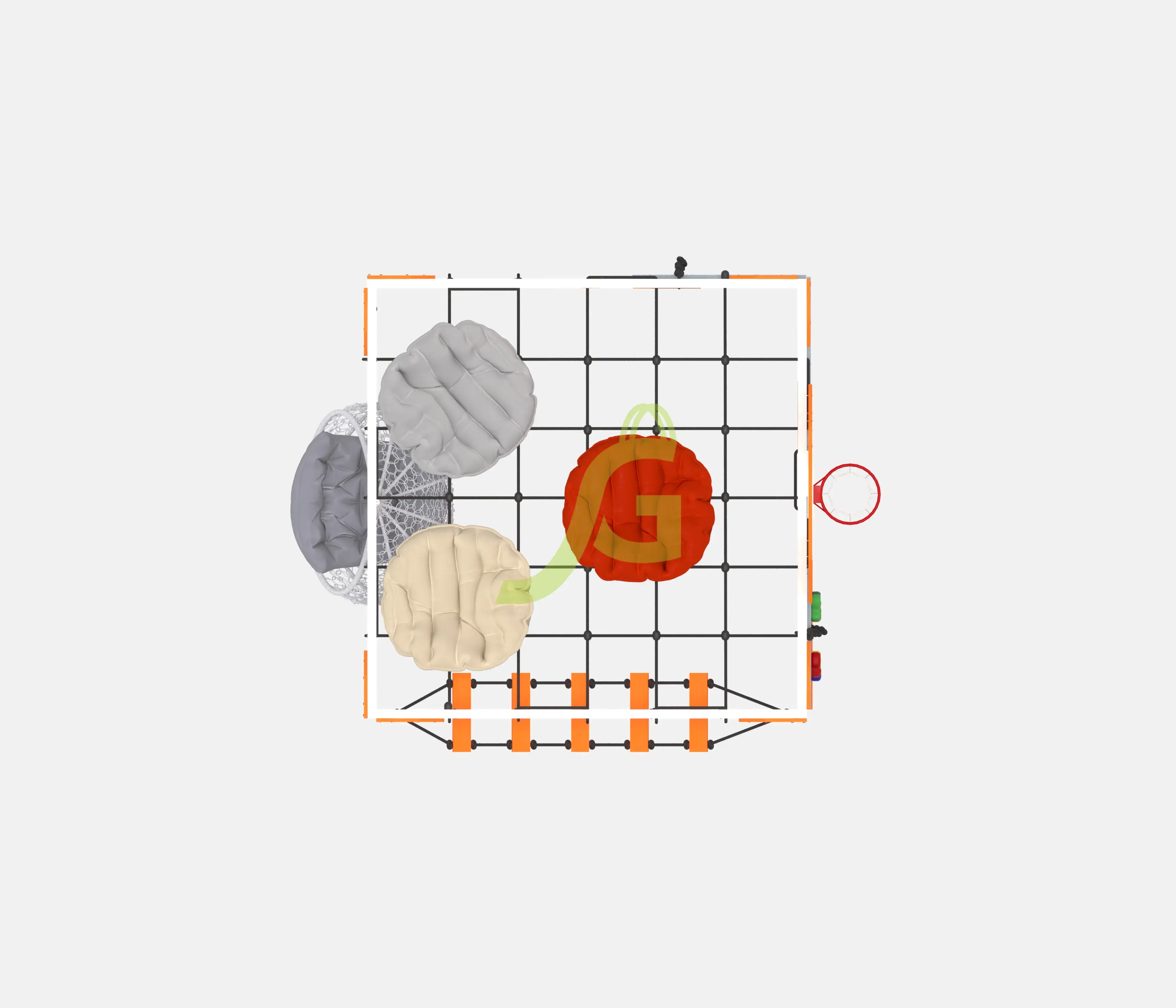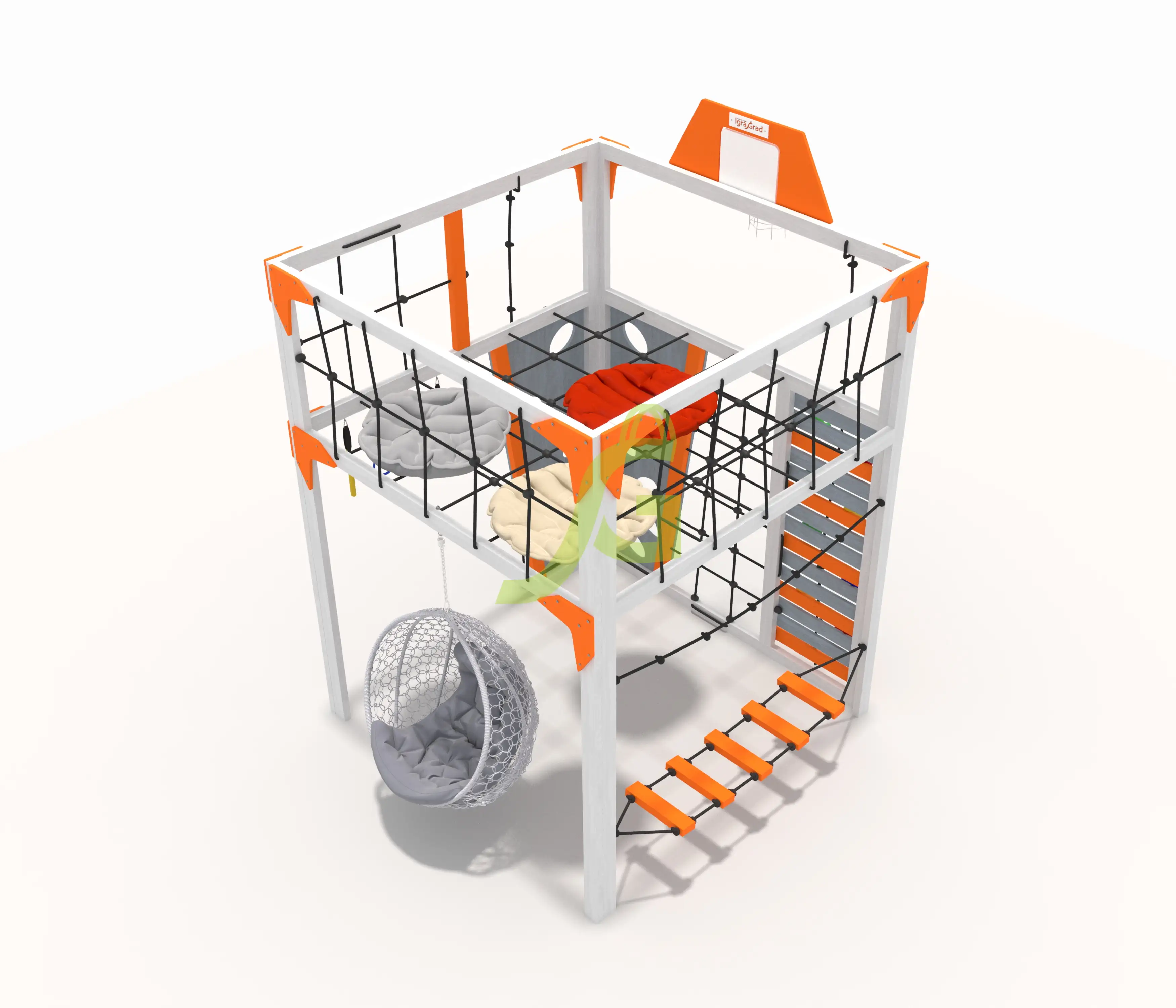 4 Место для отдыхаУникальная релакс-зона на канатной сетке — это пространство для отдыха на крыше игрового комплекса. Здесь можно удобно расположиться на мягких подушках и наблюдать за игрой других детей.