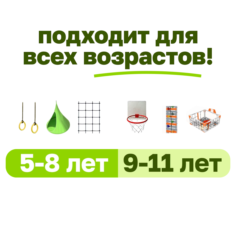 1 Для всех возрастов (от 5 до 11 лет)Площадка для гармоничного развития детей от 5 до 11 лет. Здесь найдется интересное и безопасное занятие для каждого возраста.