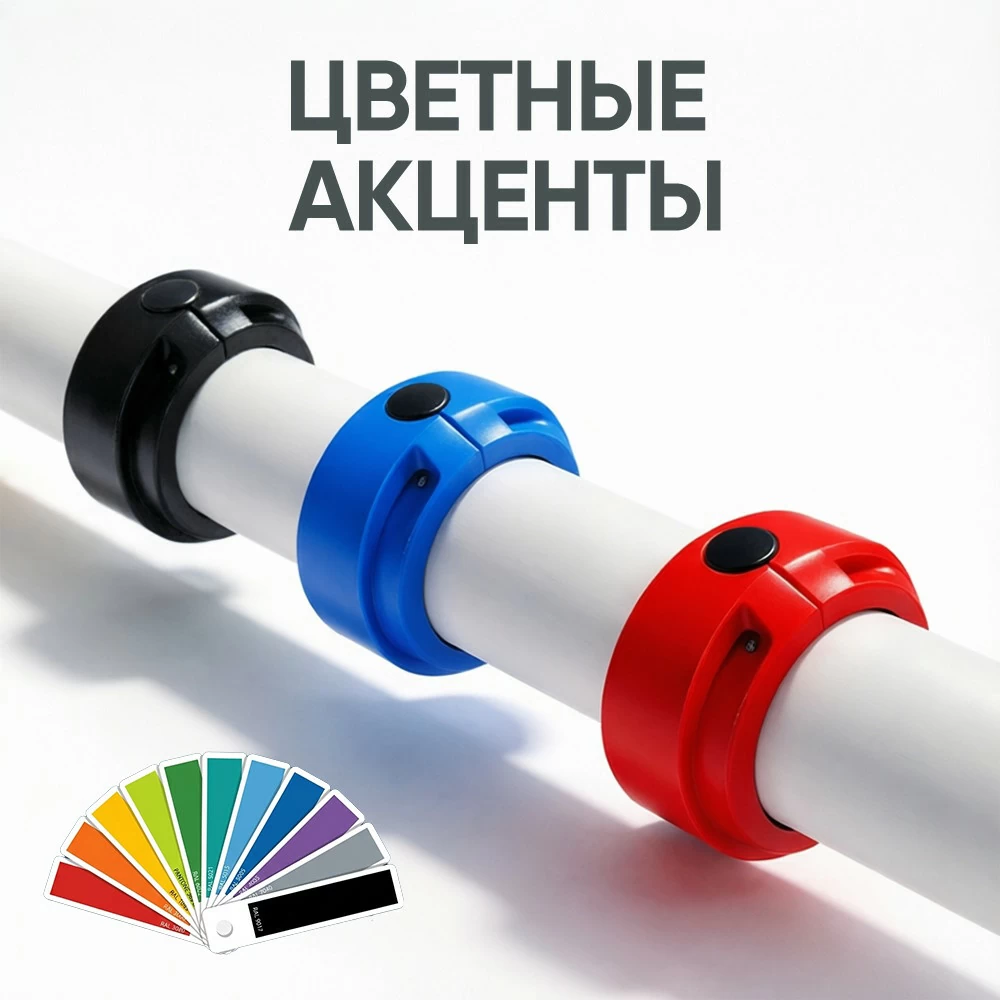 3 Выбор цвета хомутаСделайте комплекс уникальным. Хомуты доступны в 11 сочных оттенках: от классического черного до яркого салатового (Pantone 368 C) или Бирюзового (RAL 5021)