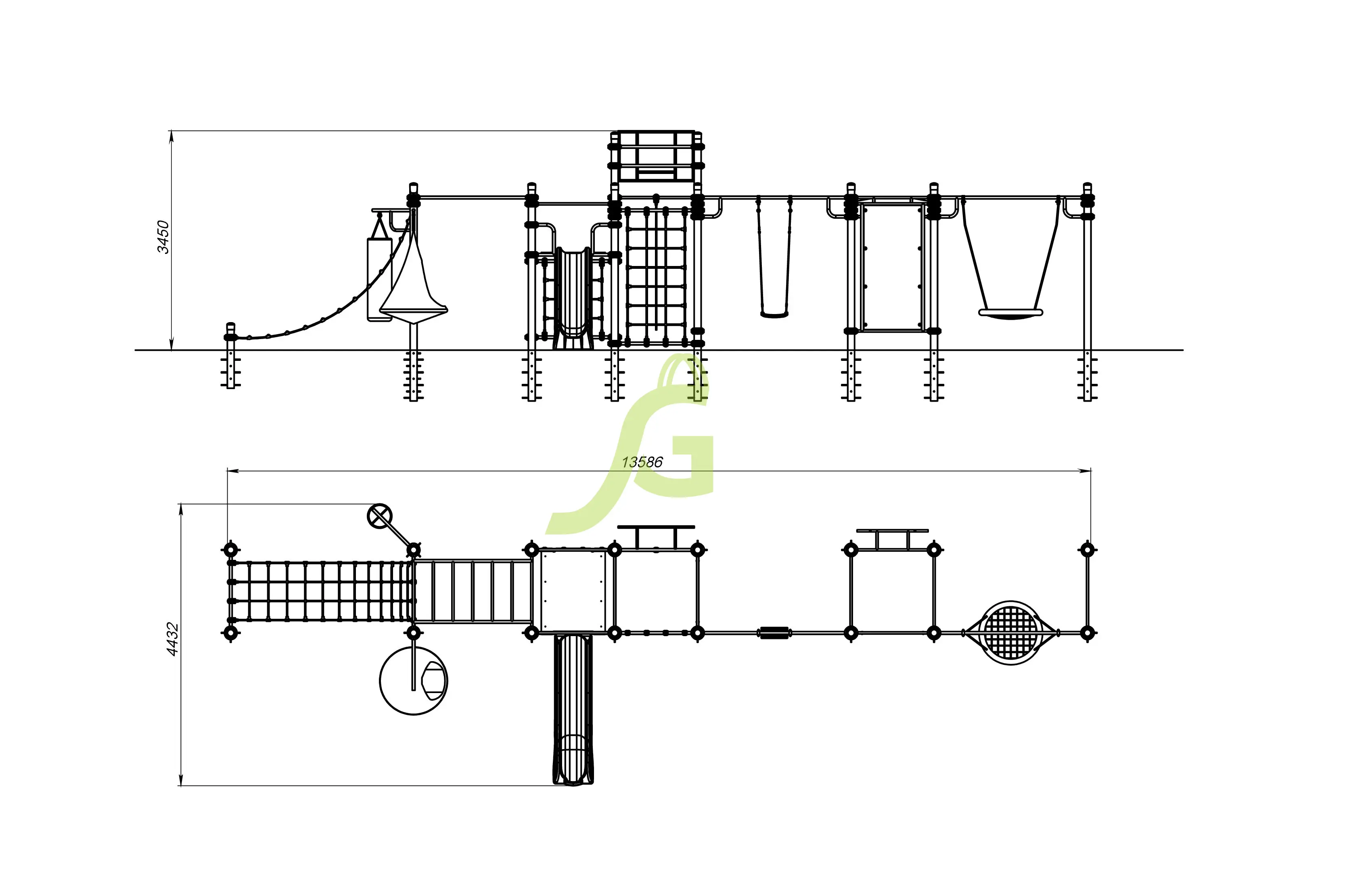 - -Наклонная канатная сетка — безопасный и увлекательный способ лазания, развивает моторику, чувство равновесия и уверенность