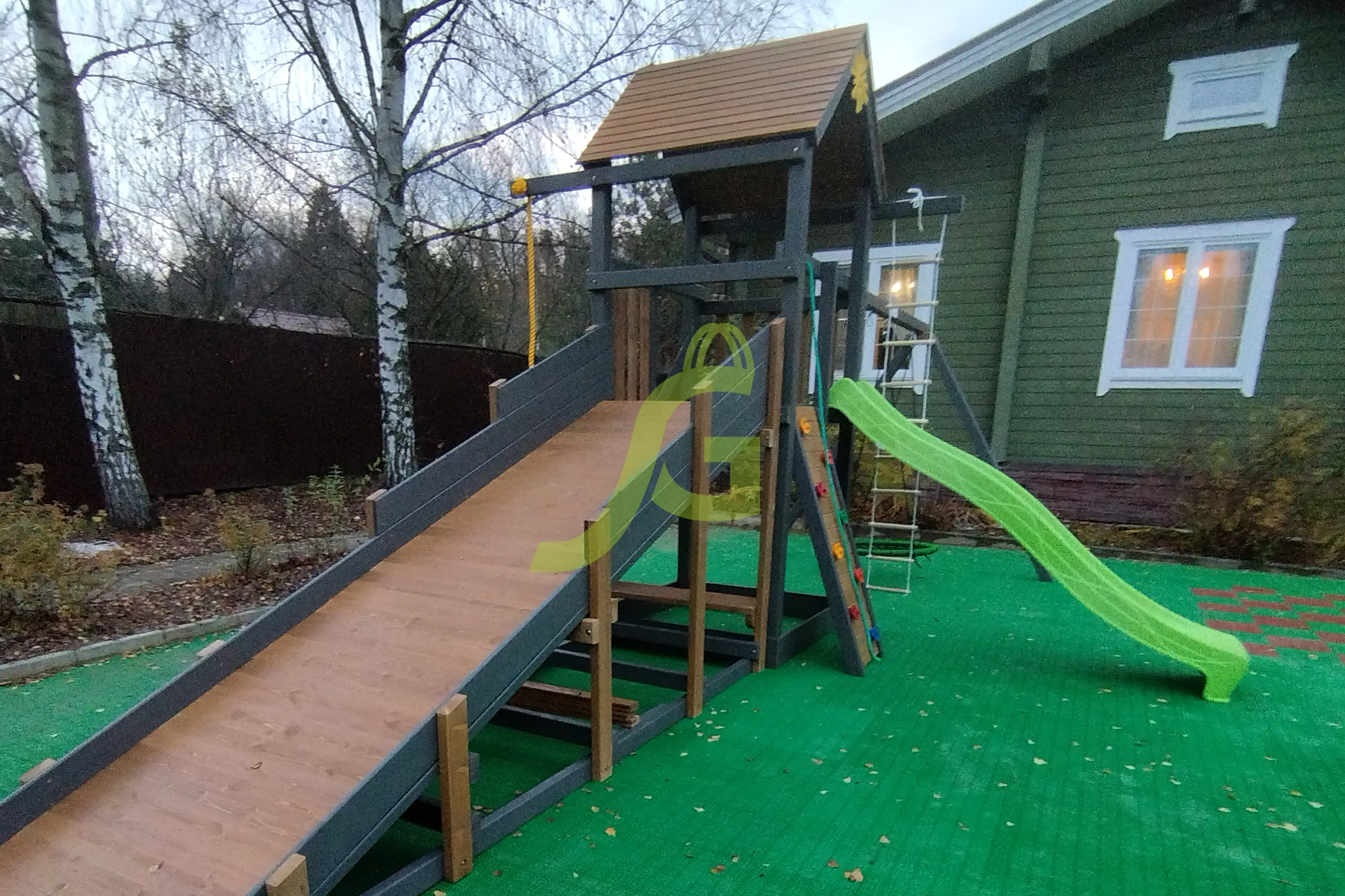 Недорогой вариант с всесезонной горкой и навесным спортивным оборудованием