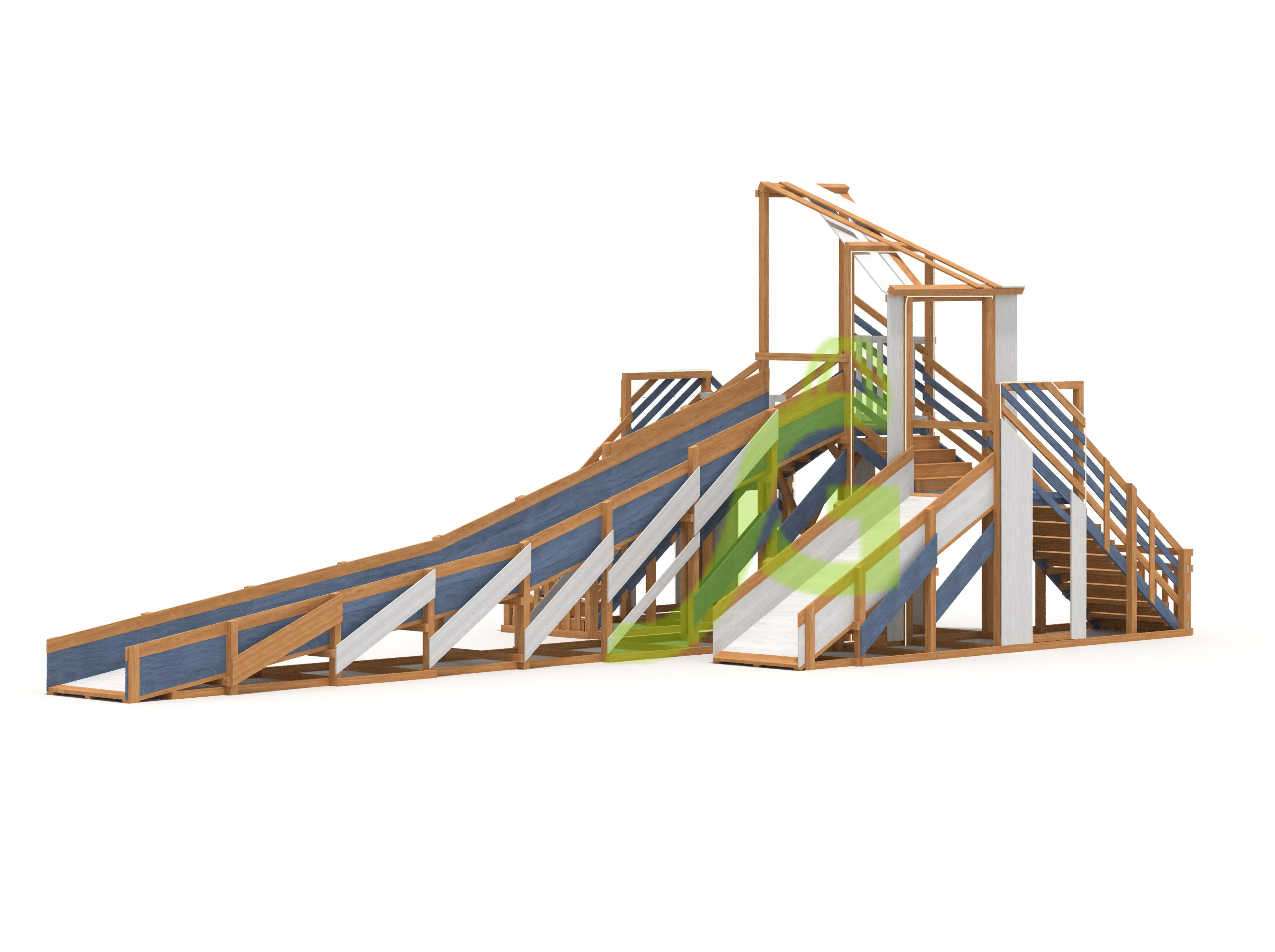Удобные лестницы: Две широкие лестницы обеспечивает быстрый подъем на аттракцион.