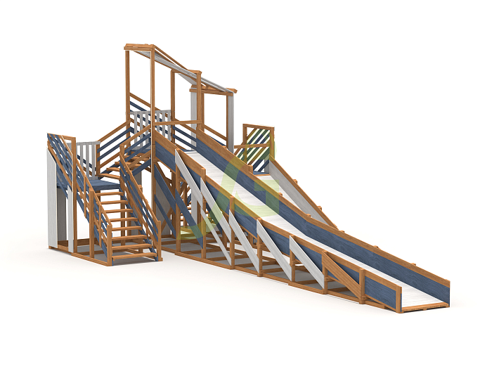 Прочность и безопасность: Горка спроектирована с учётом всех действующих нормативов. Конструкция изготовлена из бруса камерной сушки, что гарантирует долговечность и надежность в использовании.
