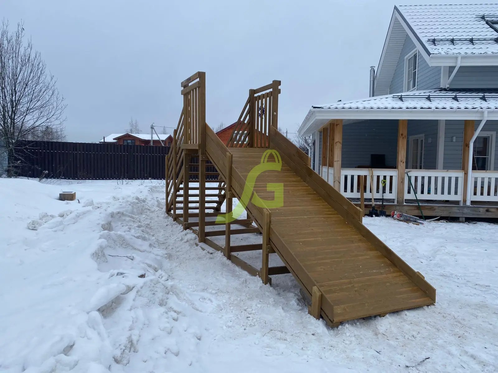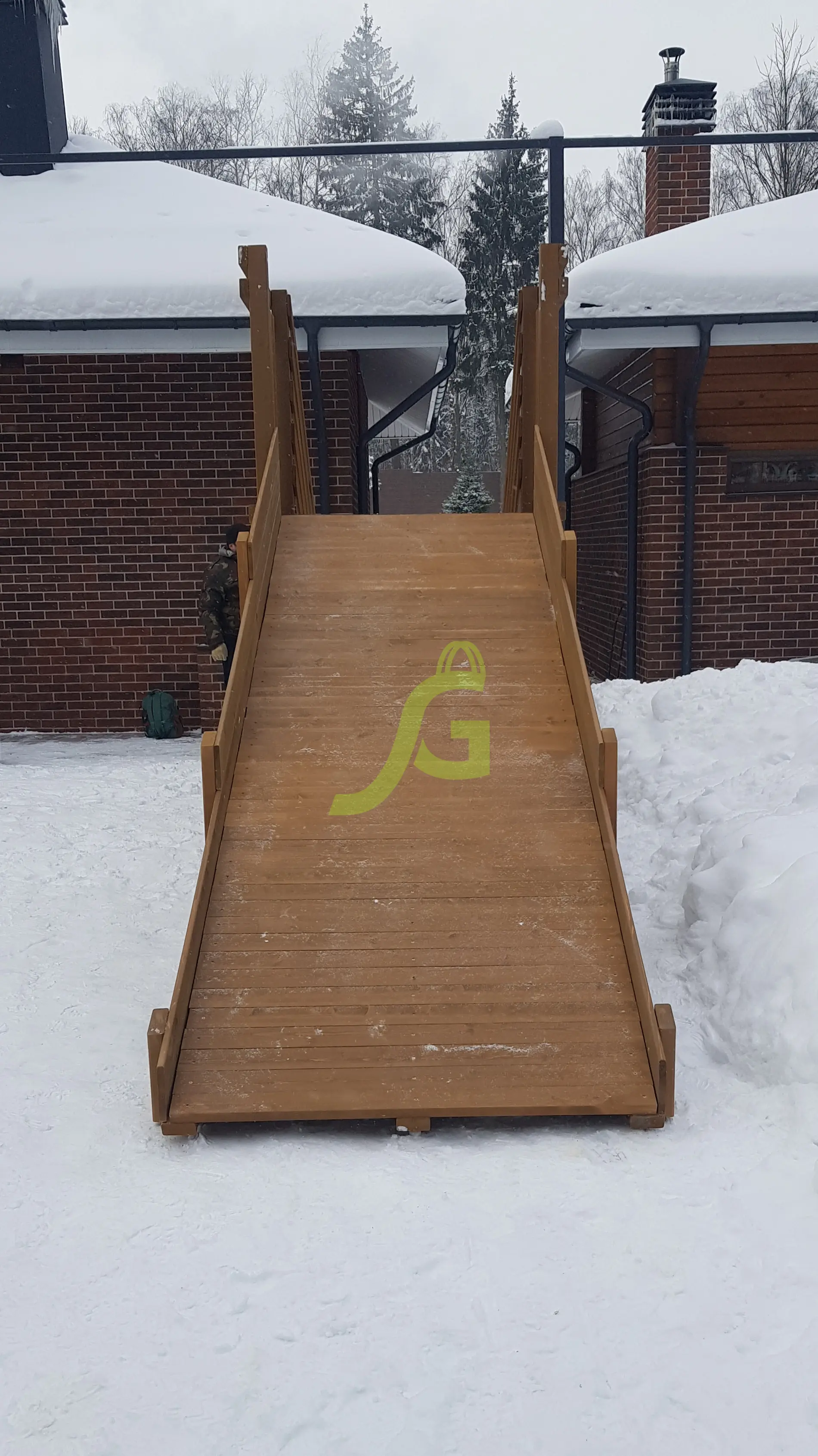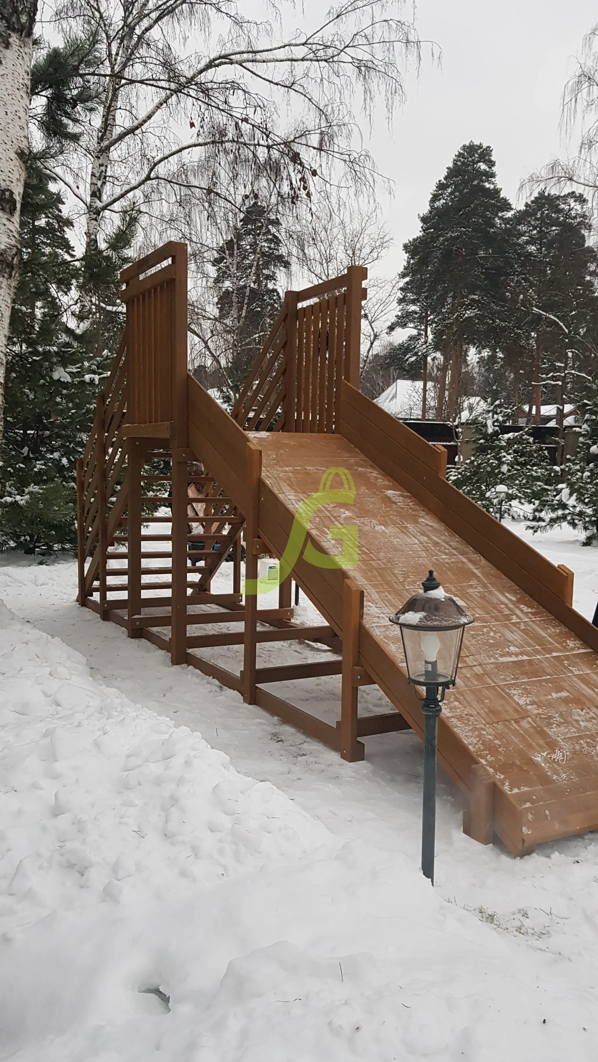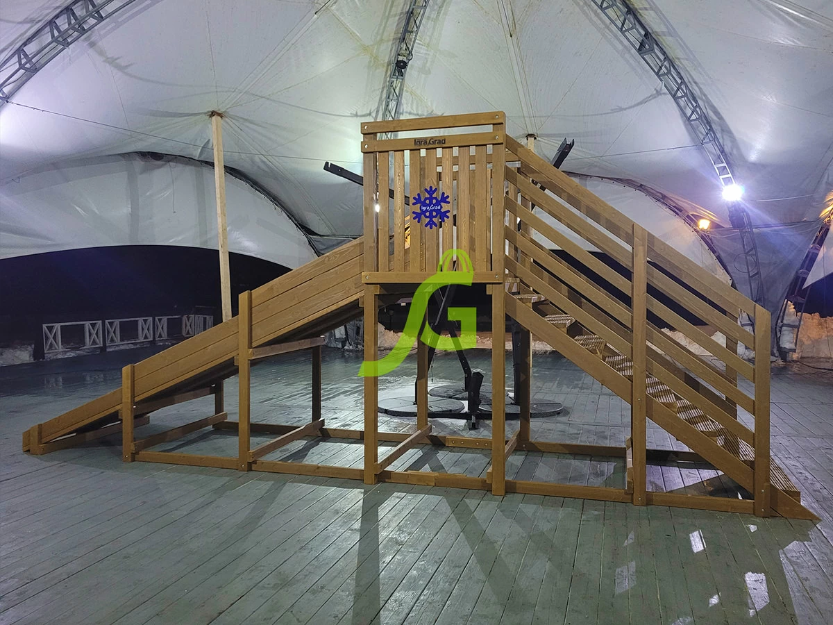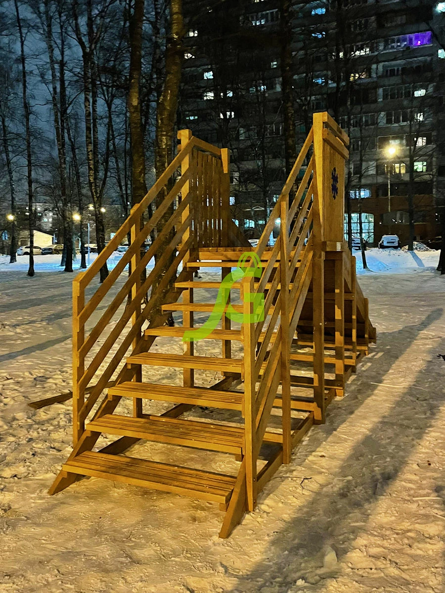 Даже ребята дошкольного возраста смогут самостоятельно взобраться наверх по ступенькам, держась за перила. Небольшая площадка в верхней части позволит детишкам удобно расположиться на ледянке или саночках.