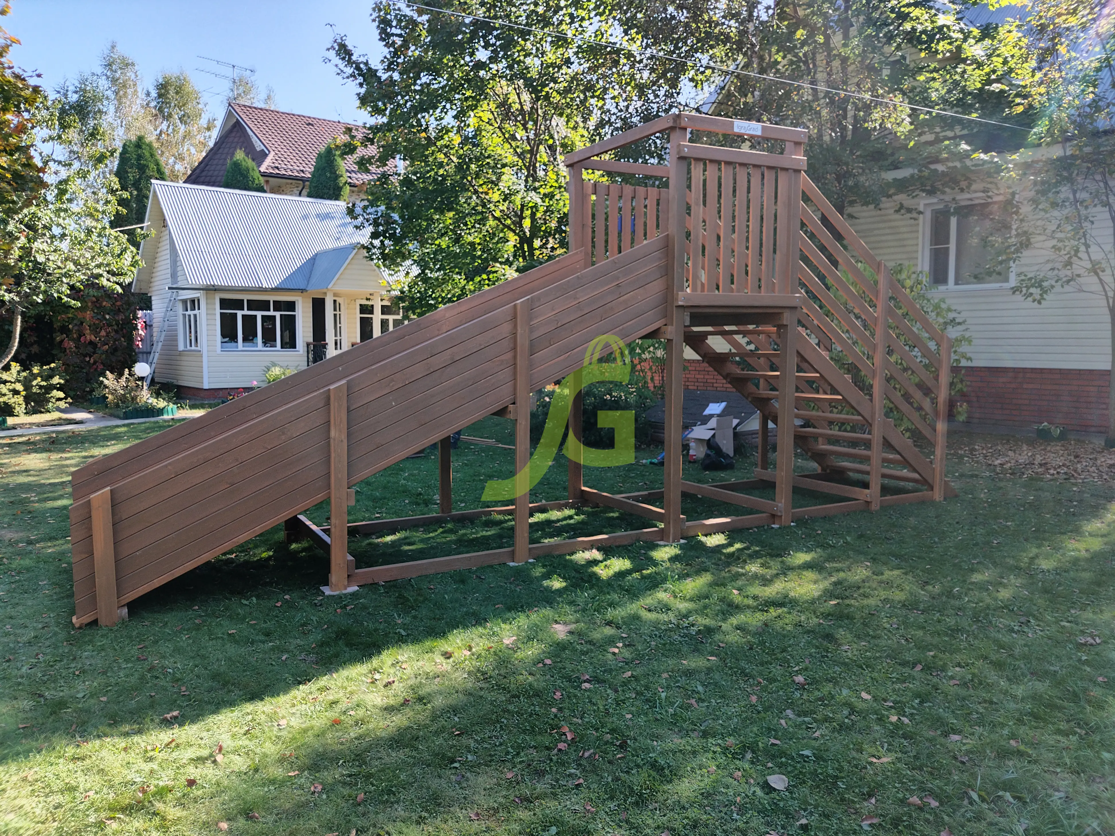 3 Цельноламельный брусИспользуем только цельноламельный брус, что обеспечивает максимальную прочность и долговечность конструкции горки