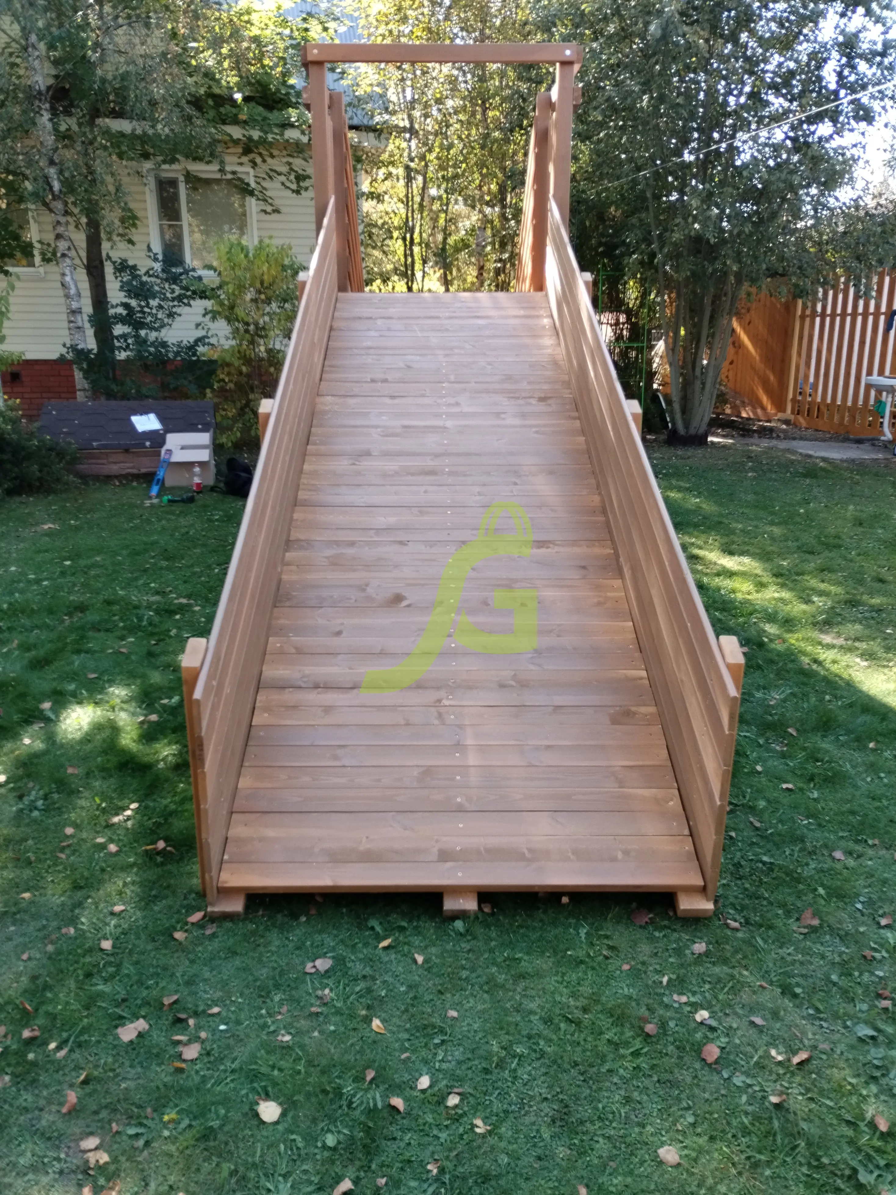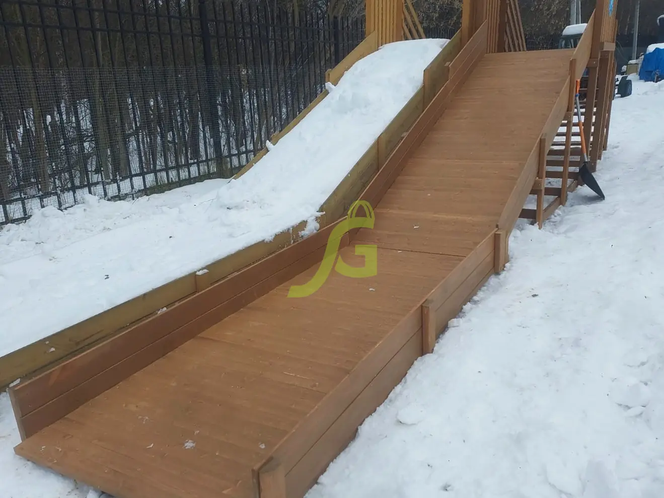 Современная детская заливная горка изготовлена из качественного дерева. Материал прошёл многоэтапную обработку, вручную отшлифован каждый элемент деревянной конструкции. Поэтому ребёнок не засадит под кожу занозу, да и одежда не будет цепляться за поверхность. Качественная сухая древесина выдерживает палящее солнце и суровые сибирские морозы.