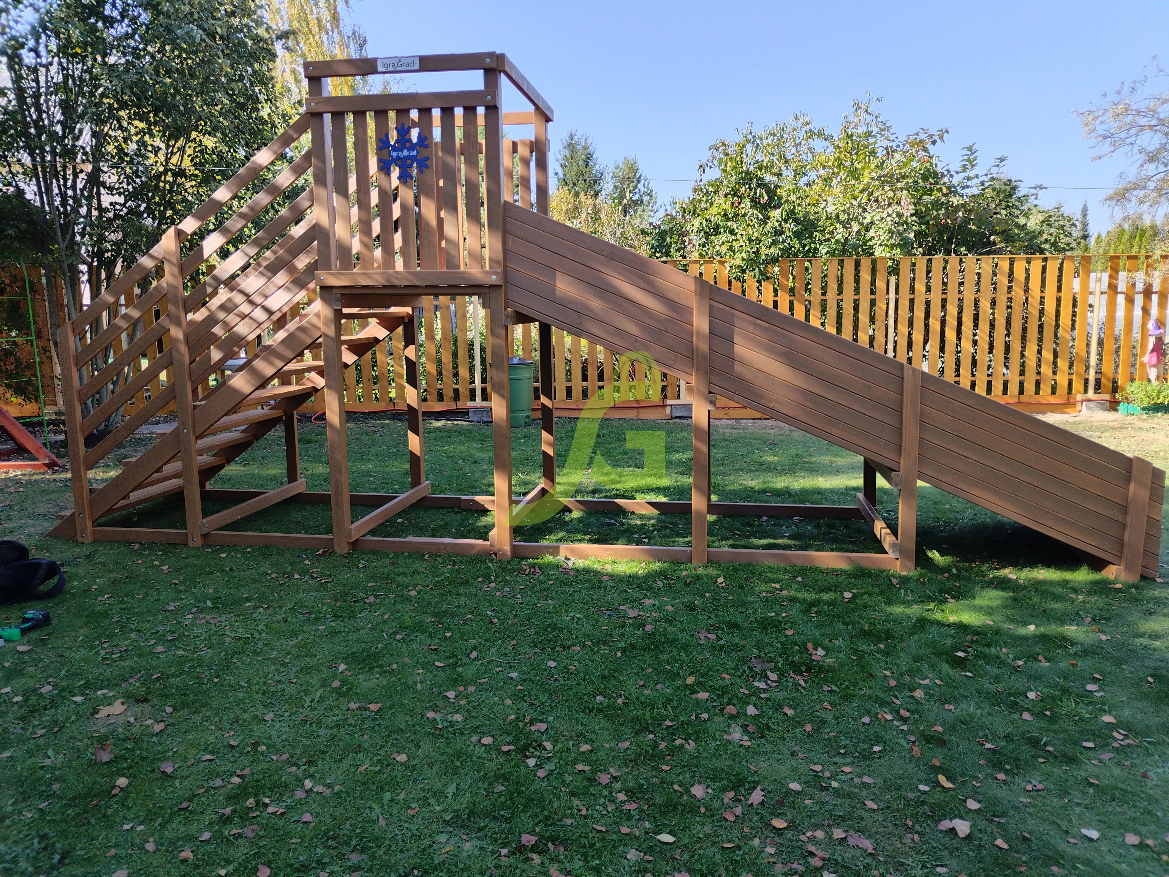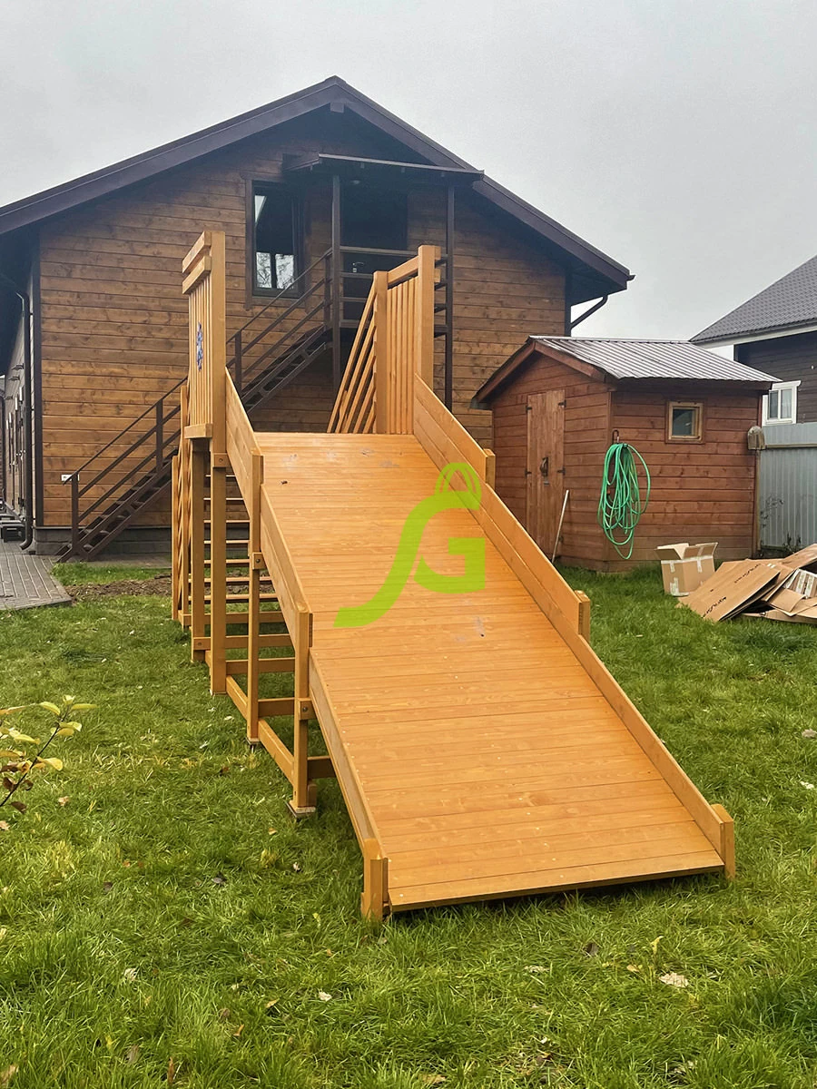Горка рассчитана на одновременную игру небольшой группы детей. Мы гарантируем вам длительный срок эксплуатации. Конструкция будет полезна и летом, детишки с богатой фантазией обязательно найдут ей достойное применение. Детская деревянная горка обязательно понравится детям и взрослым.