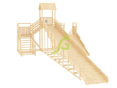 - - На большой двухскатной деревянной горке время проводят в обществе, поэтому у детей происходит социальная адаптация, они учатся общаться со сверстниками.