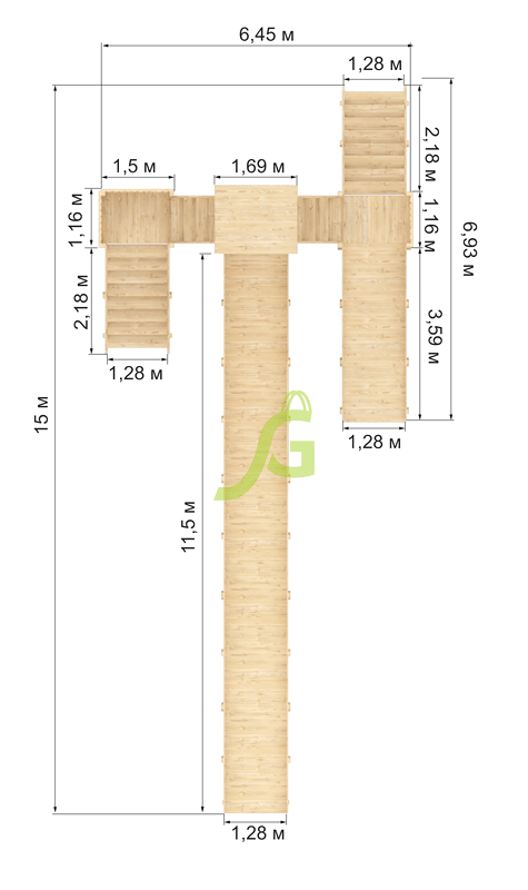 - - Модуль безопасен для частного, общественного пользования и детей дошкольного возраста. Ведь конструкция оборудована бортиками, безопасными лестницами с перилами, усиленными балками. Имеется деревянная крыша, под которой можно спокойно ожидать своей очереди.