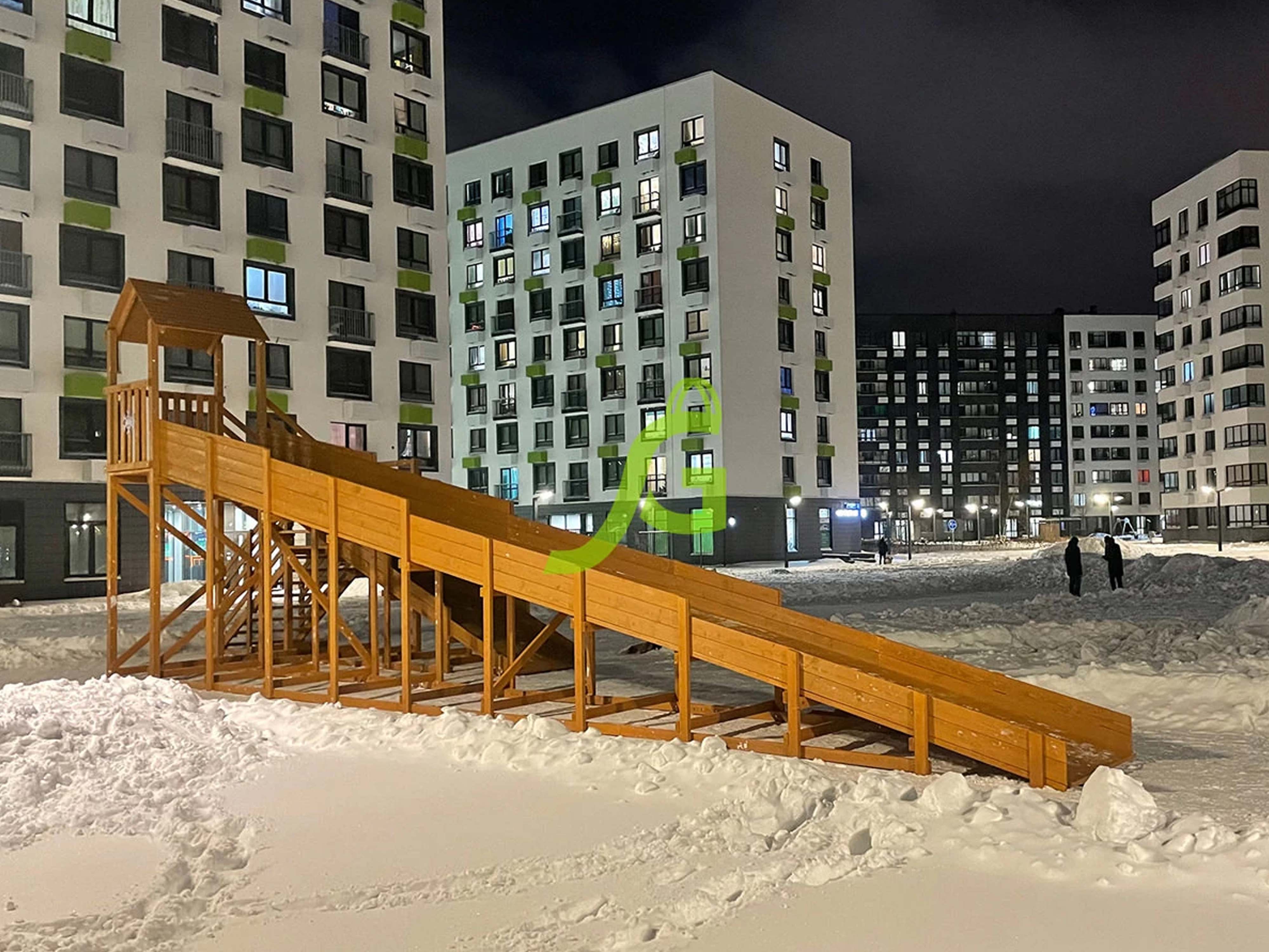 Купить зимние деревянные горки рекомендуем у нас. Мы ответственно подходим к их производству, используя качественную сухую древесину и безопасные для здоровья обрабатывающие средства. Мы беспокоимся за здоровьем детей, ведь они – наше будущее!