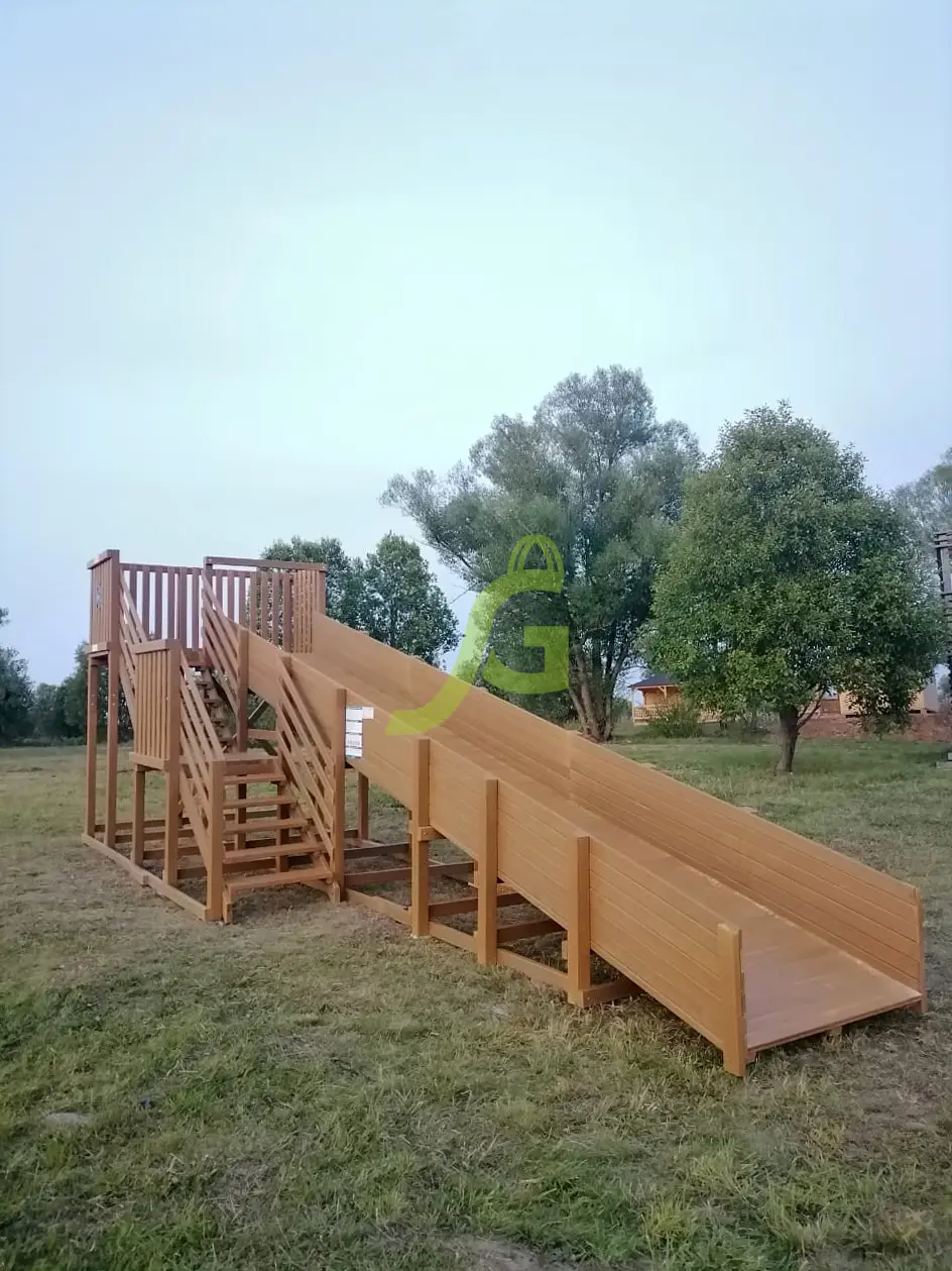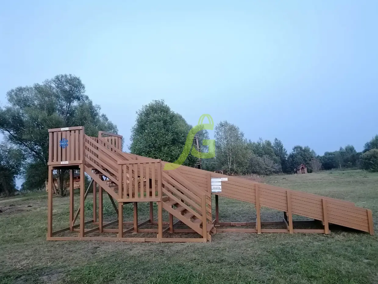 Преимущественный материал конструкции – дерево. Он характеризуется экологичностью, высокой прочностью. Известно, древесине свойственно рассыхаться и поддаваться гниению, но только не в нашем случае. Деревянные горки от компании IgraGrad заслуженно получили сертификат качества. Ведь материал полностью обработан нетоксичным средством на водной основе. Пропитка не пропускает влагу, не позволяет древесине рассыхаться, благодаря чему горка прослужит Вашим детям длительный срок. Кроме этого, катание с горки обладает огромной пользой: